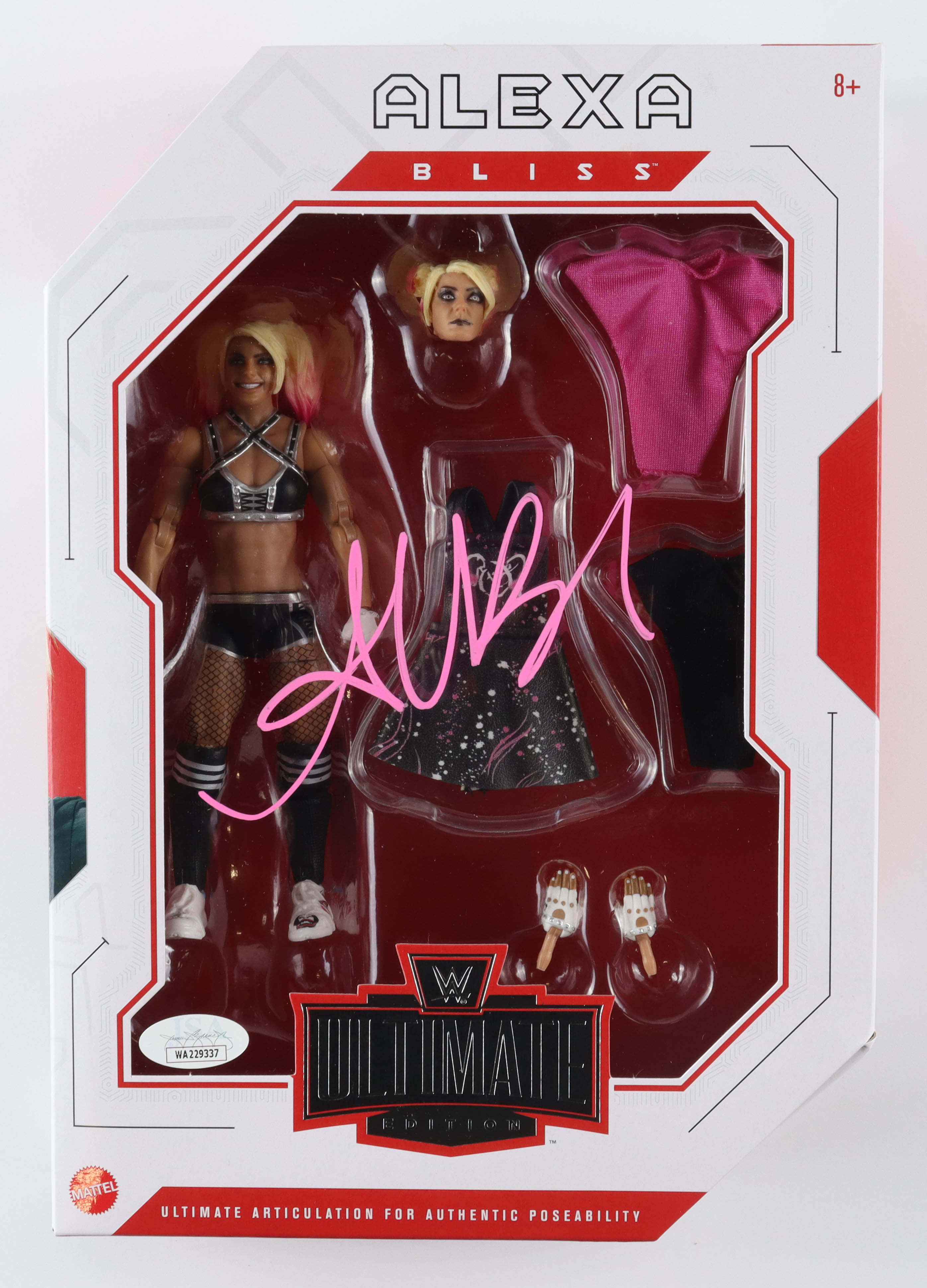 2020 Mattel WWE Ultimate Series action figure measures approximately 7" tall and has been hand-signed on the packaging by Alexa Bliss.