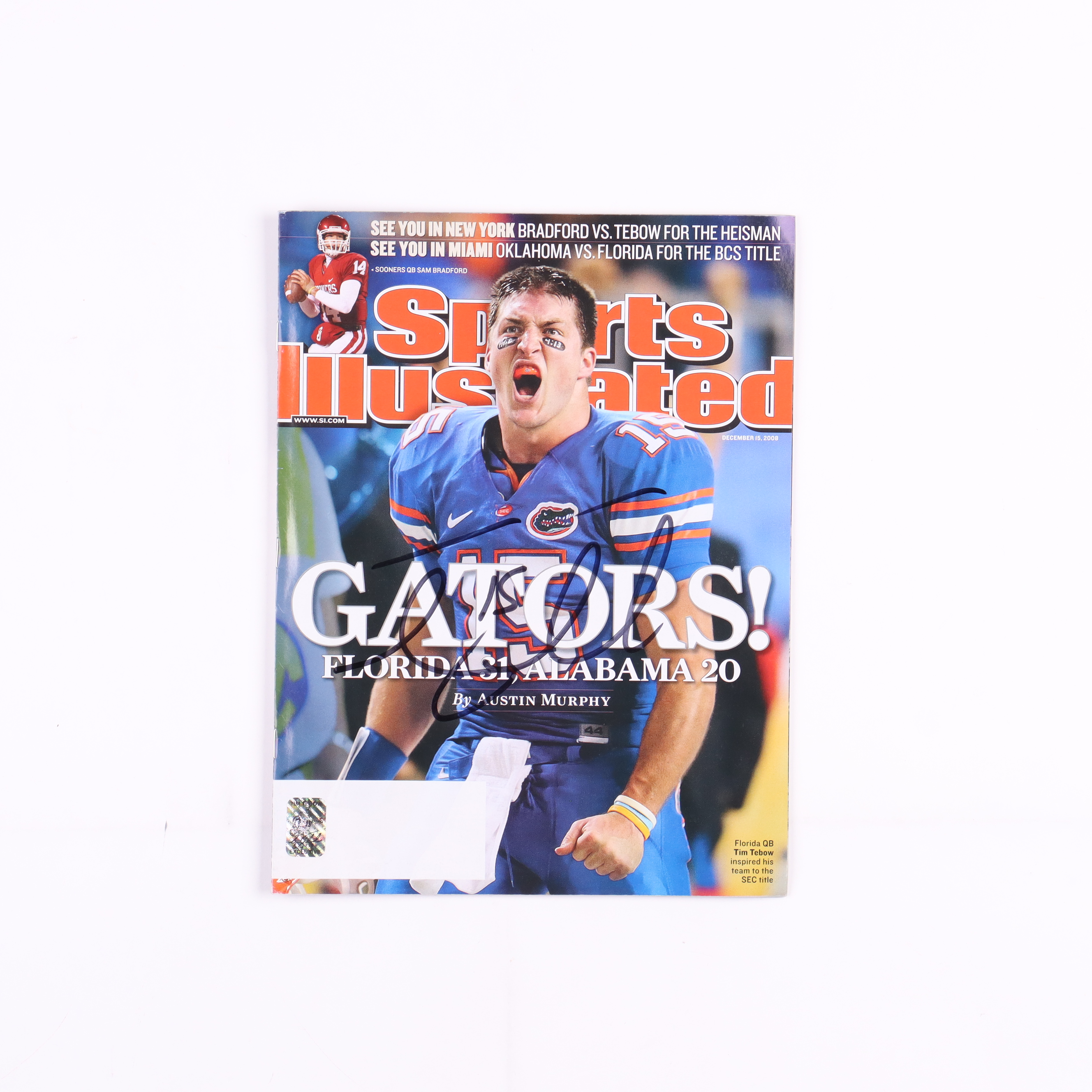 December 15, 2008 issue of Sports Illustrated magazine has been hand-signed on the cover by Tim Tebow (Florida Gators).