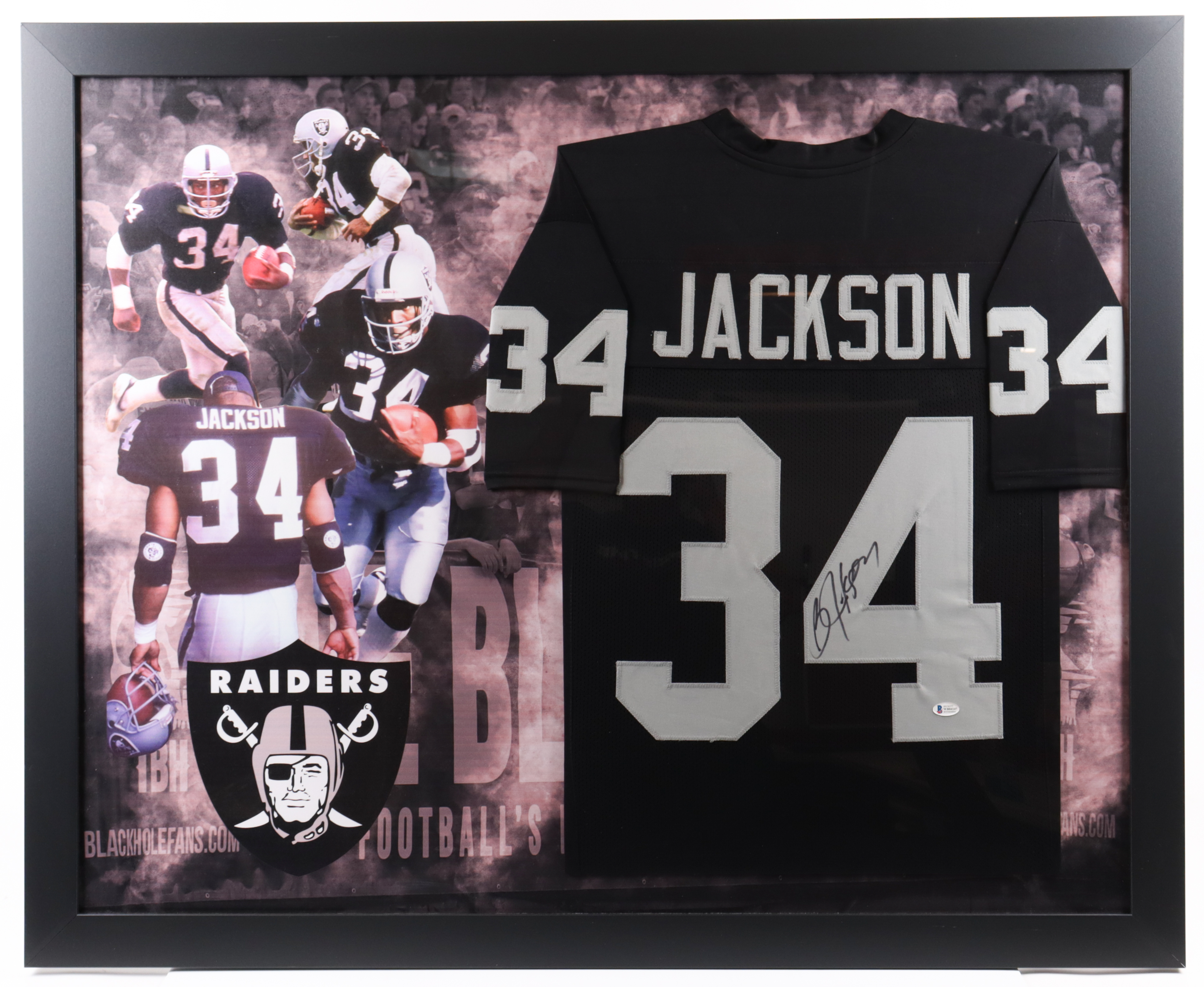 Bo Jackson Signed Raiders Custom Framed Jersey Display (Beckett)
