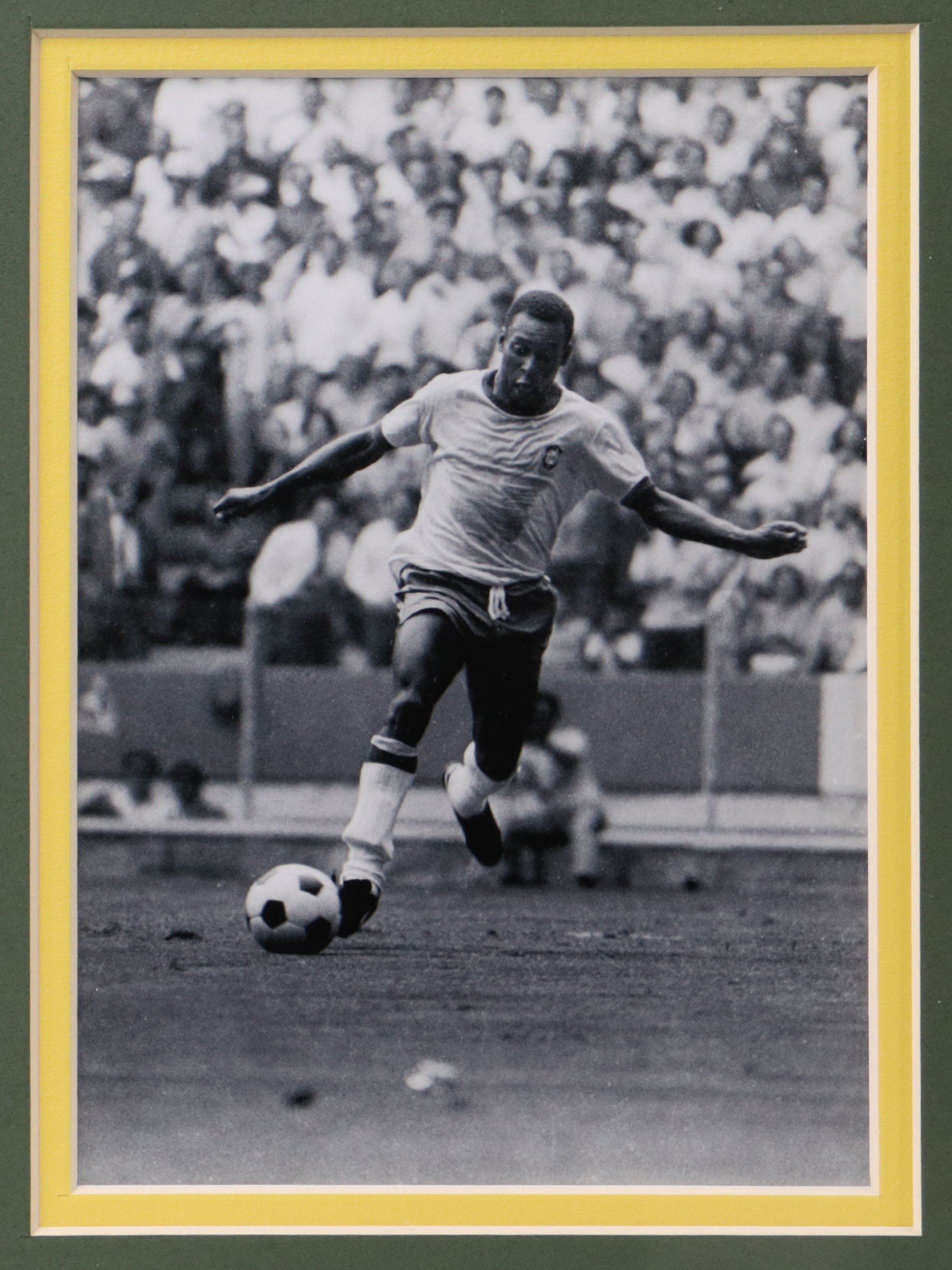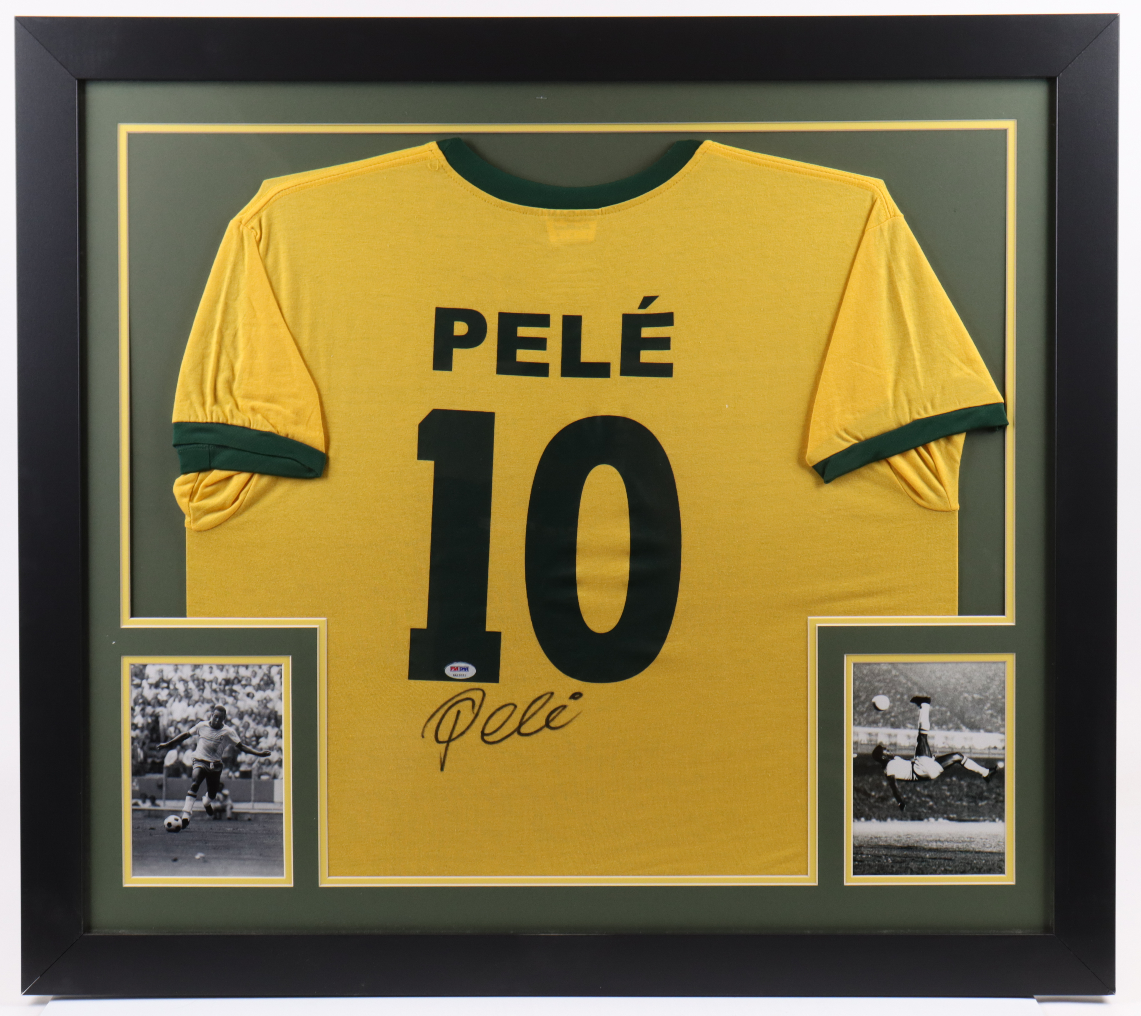 Custom frame measures approximately 32" x 36" in size and features a jersey that has been hand-signed by Pele (HOF).