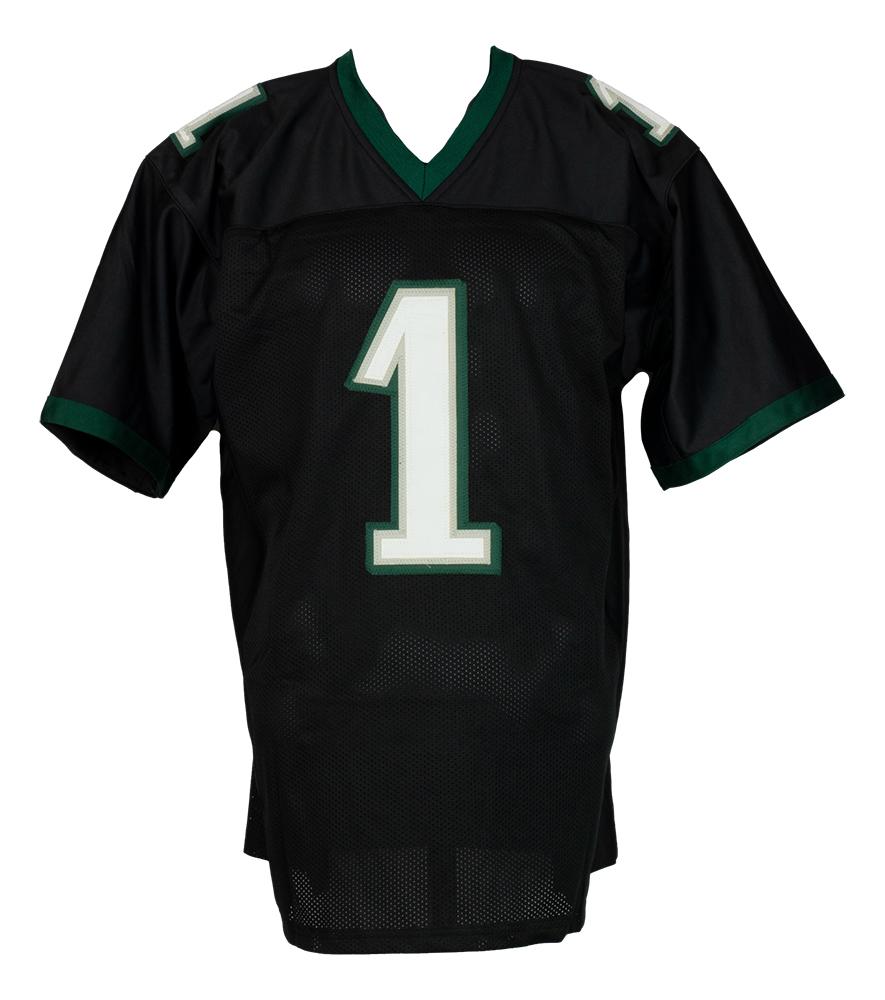 Custom on-field style jersey. Everything is stitched on, size XL. Hand-signed by Jalen Hurts.