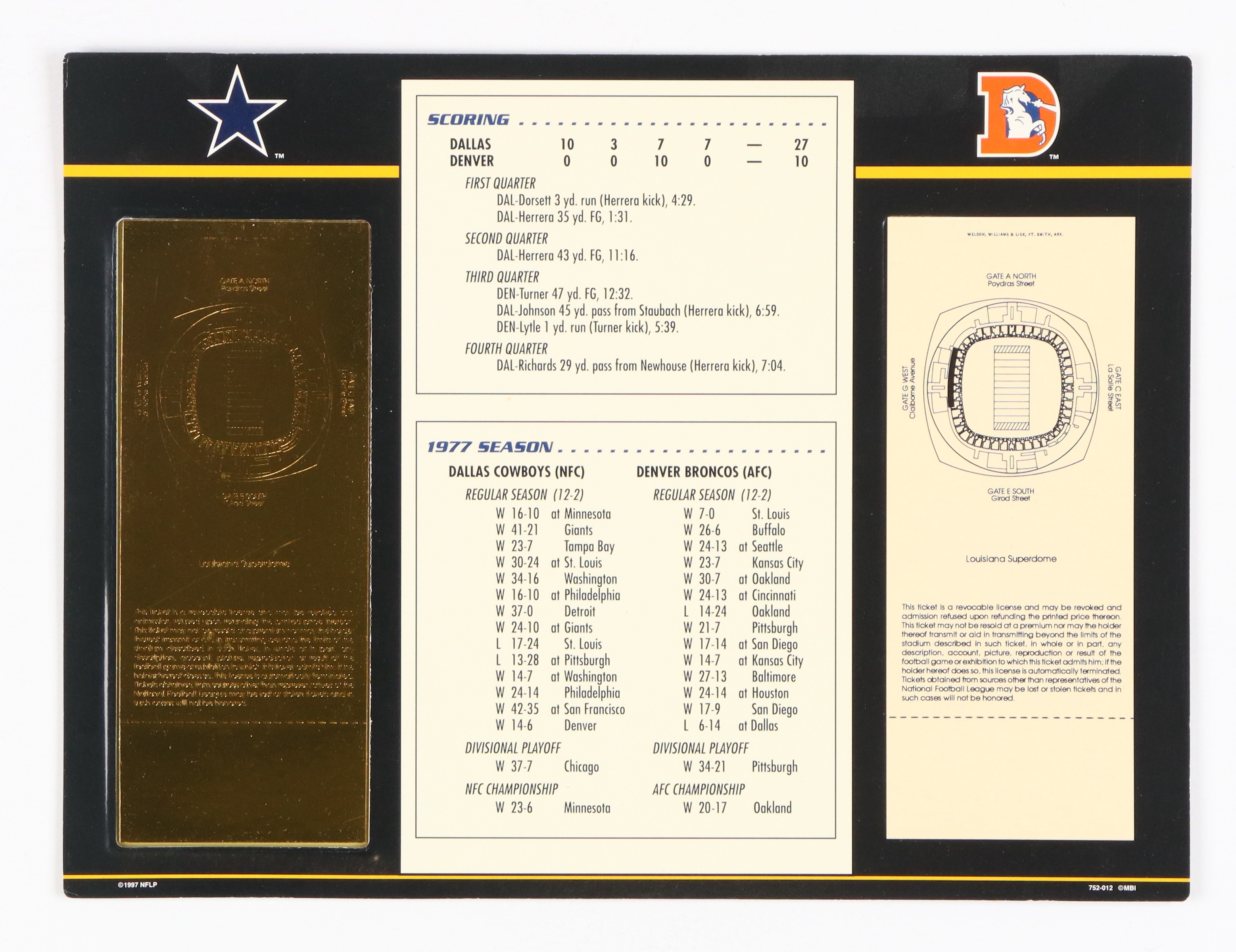 Super Bowl XII Commemorative 9x12 Score Card Display with 23kt Gold Ticket