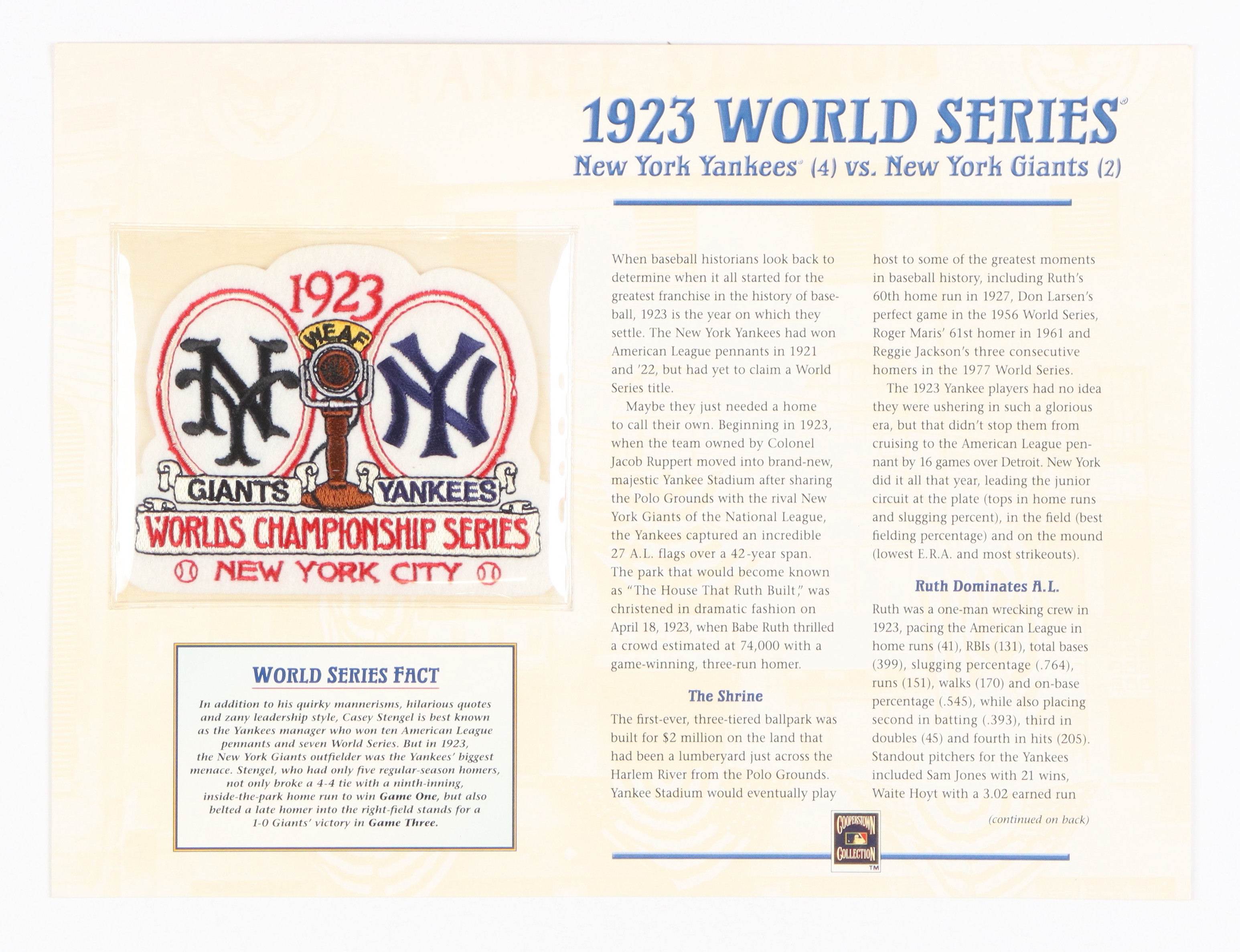 1923 World Series 9x12 Patch Display