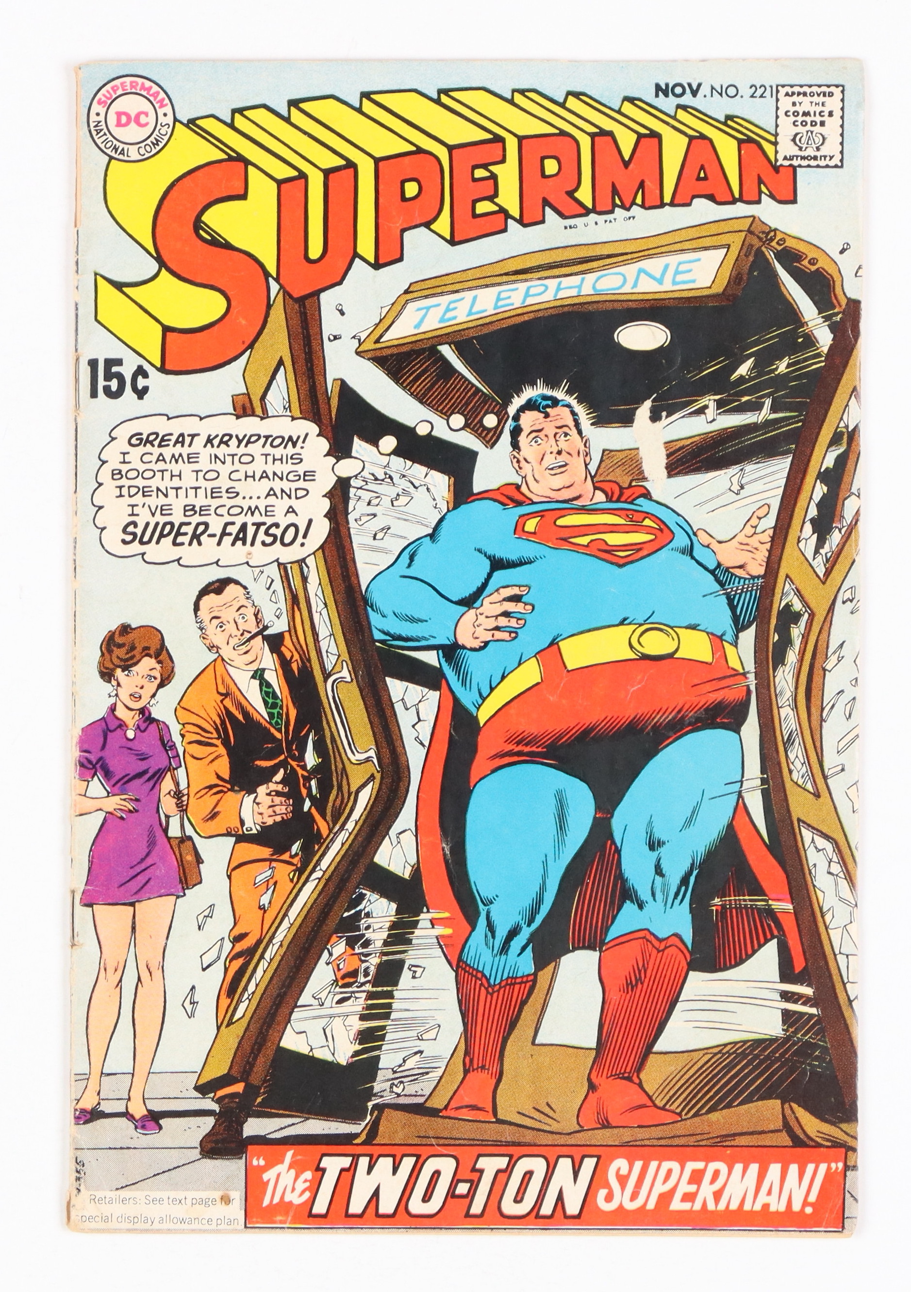 November 1969 "Superman" Issue #221 DC Comic Book. Please see photo for details regarding the condition of the book.