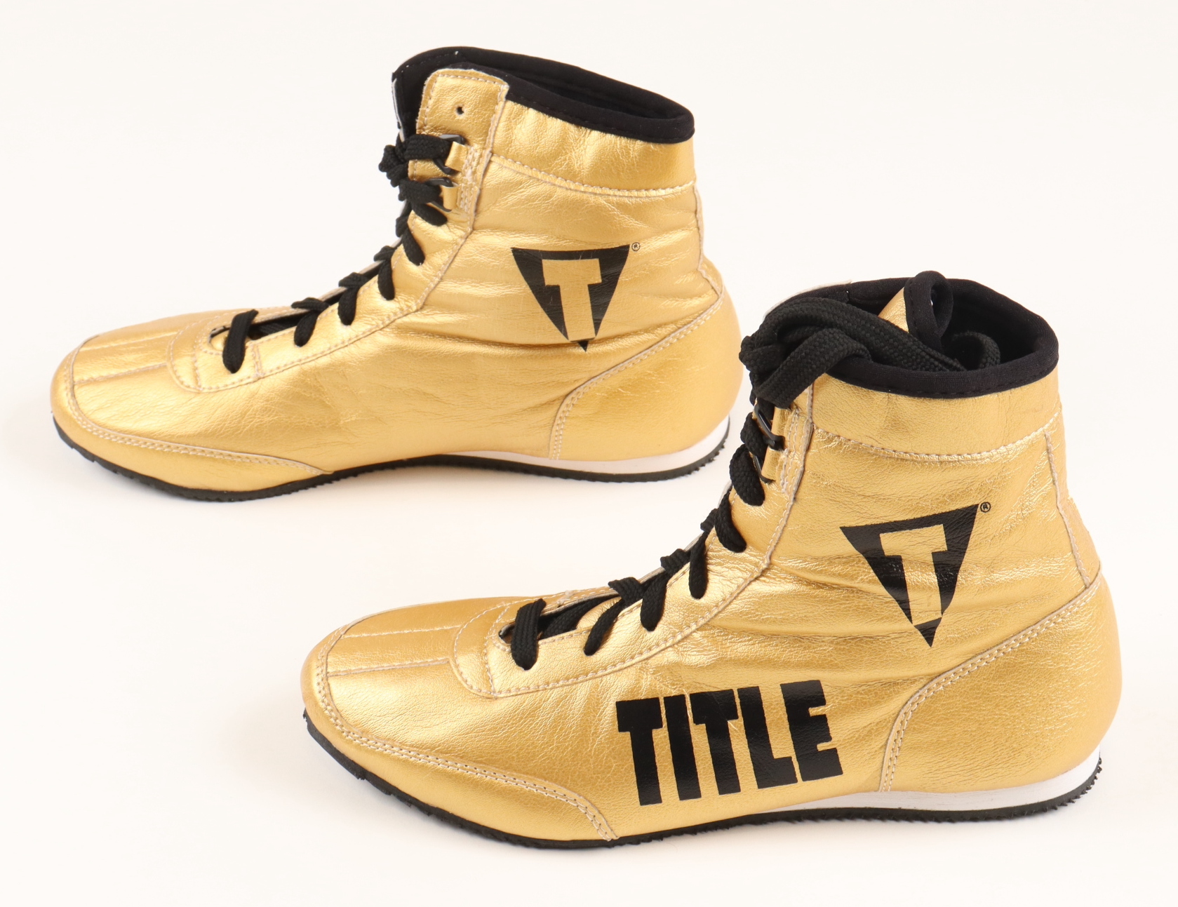 Pair of Title boxing shoes. The right shoe has been hand-signed by Mike Tyson (HOF).