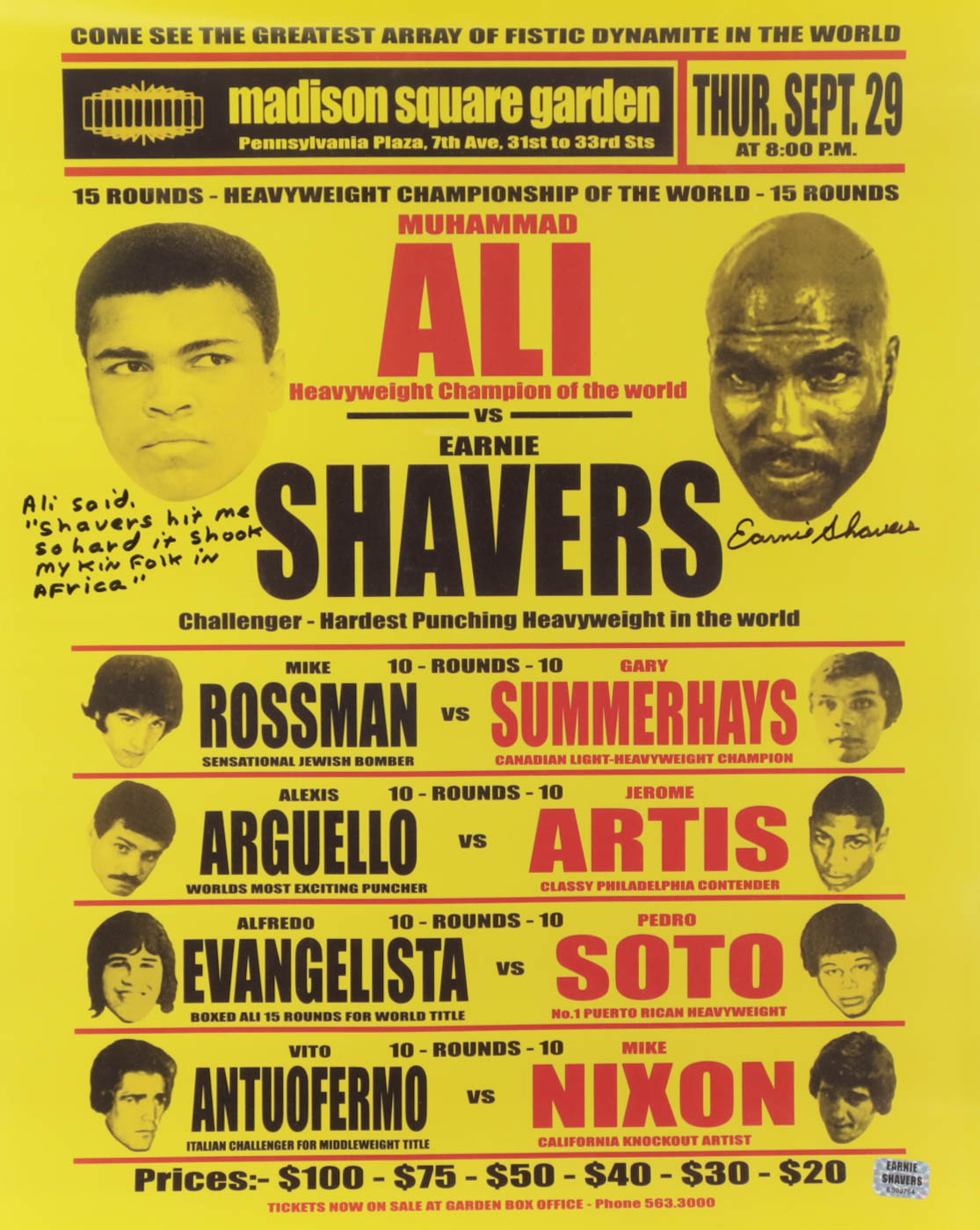 Poster measures 16" x 20" in size and has been hand-signed and inscribed by Earnie Shavers (D. 2022).