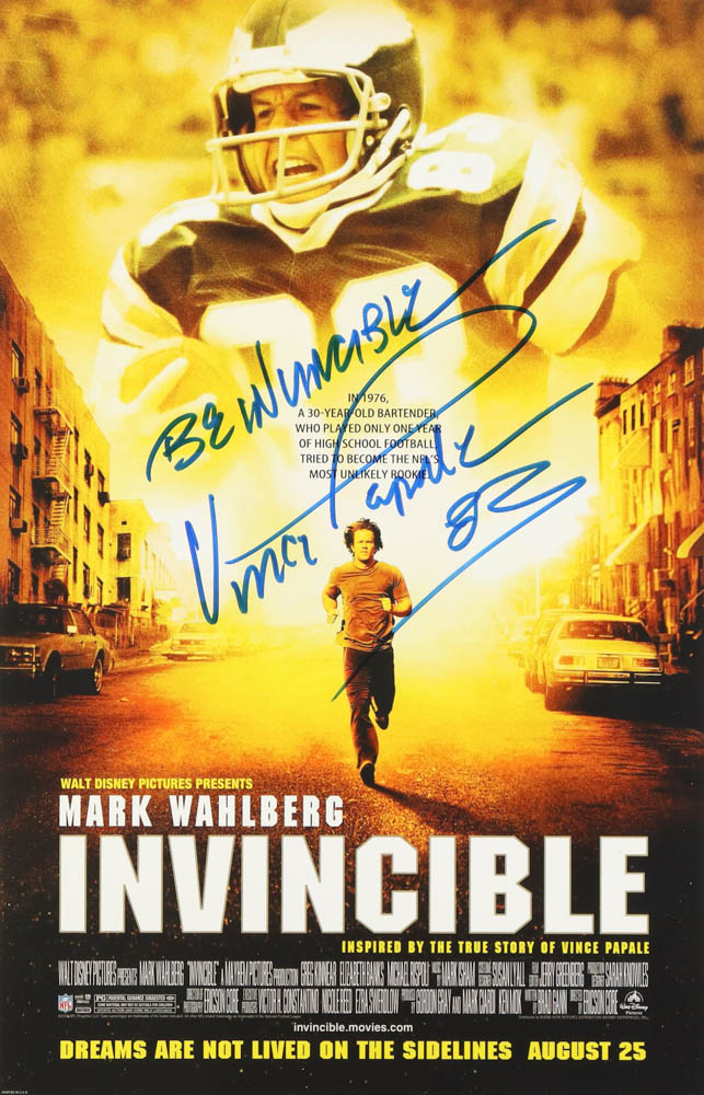 Vince Papale Signed "Invincible" 11x17 Photo Inscribed "Be Invincible" (AutographCOA)