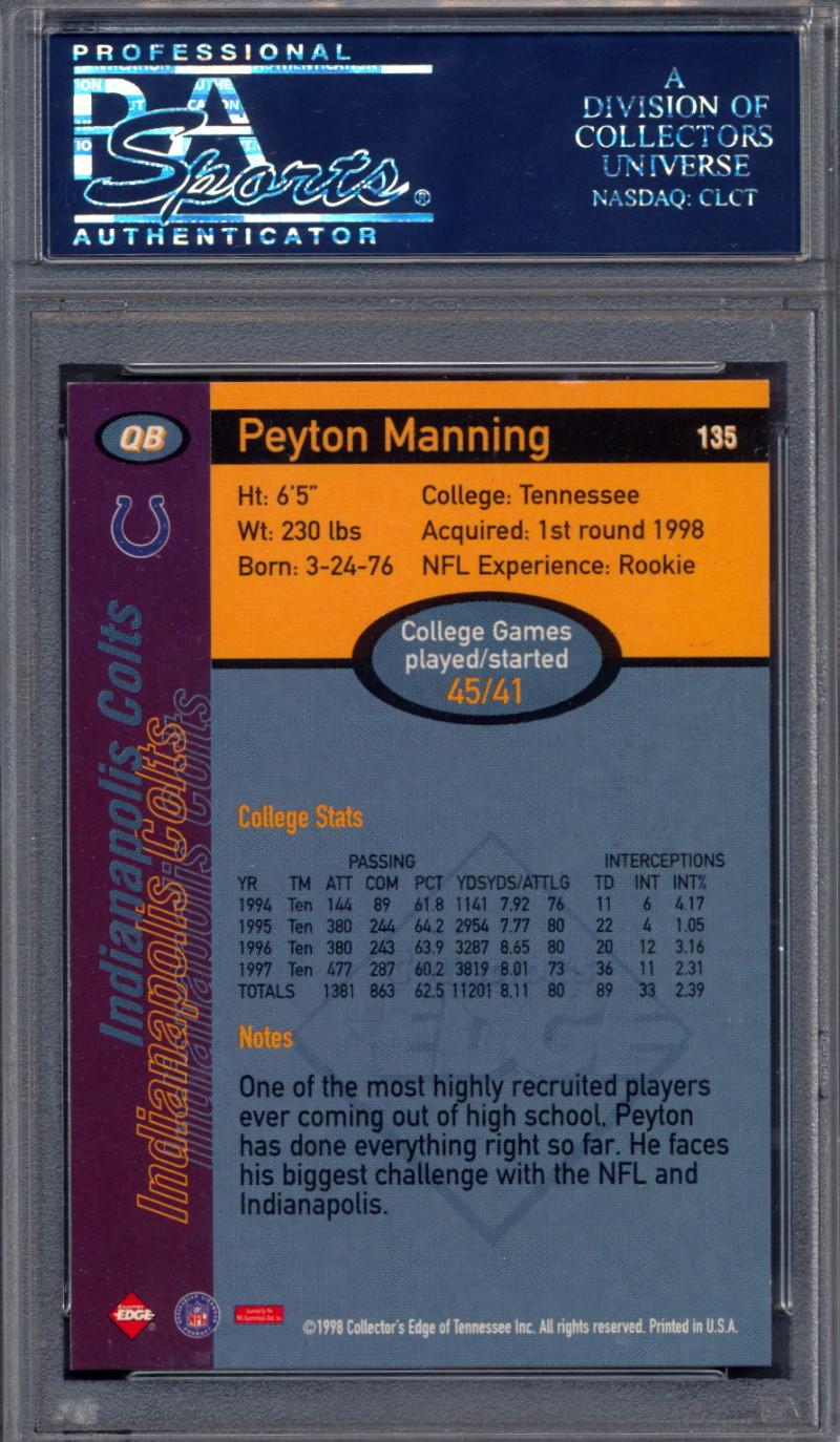 Trading Card has been hand-signed by Peyton Manning (Indianapolis Colts, HOF). Please see photos for more details regarding the card.
