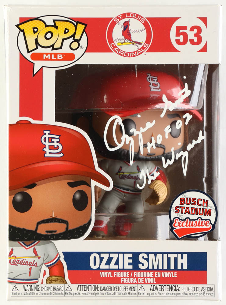 Funko Pop! vinyl figure measures approximately 4" in height. Hand-signed and inscribed by Ozzie Smith (HOF).
