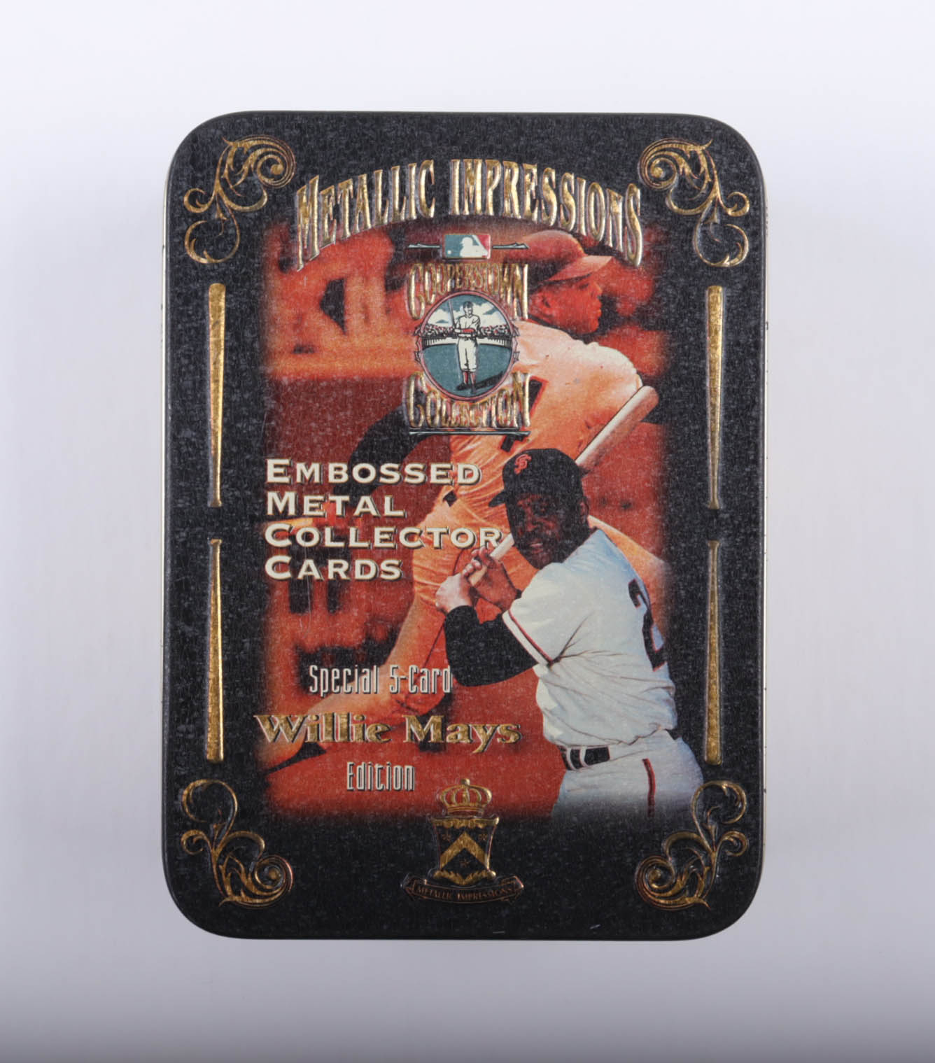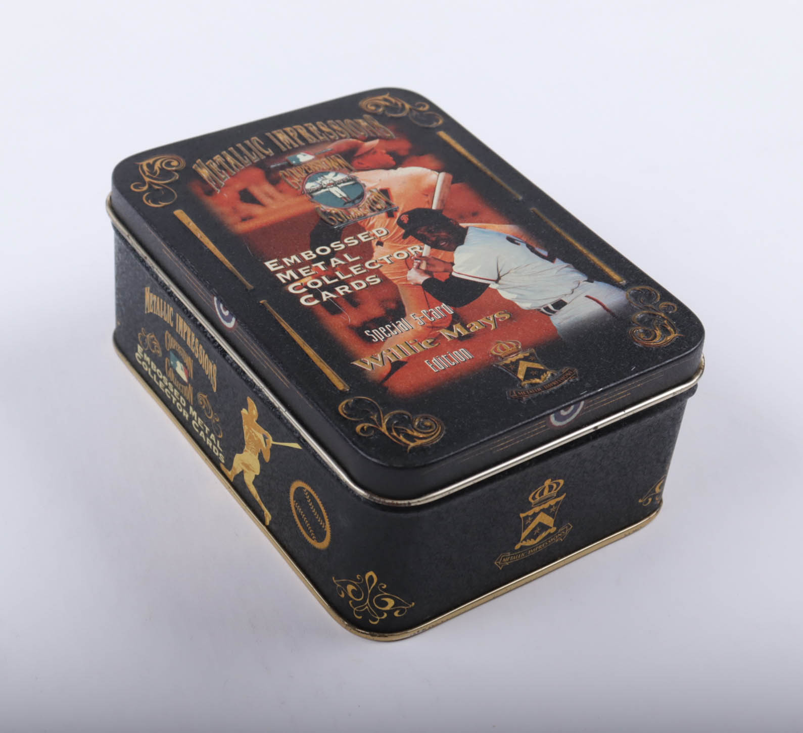 Willie Mays Complete Set of (5) Metallic Impressions Embossed Metal Collector Cards with Original Tin Box