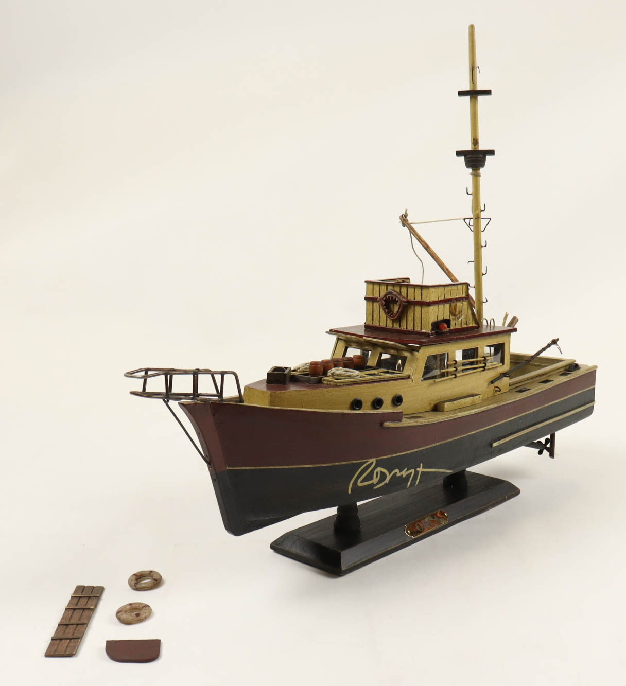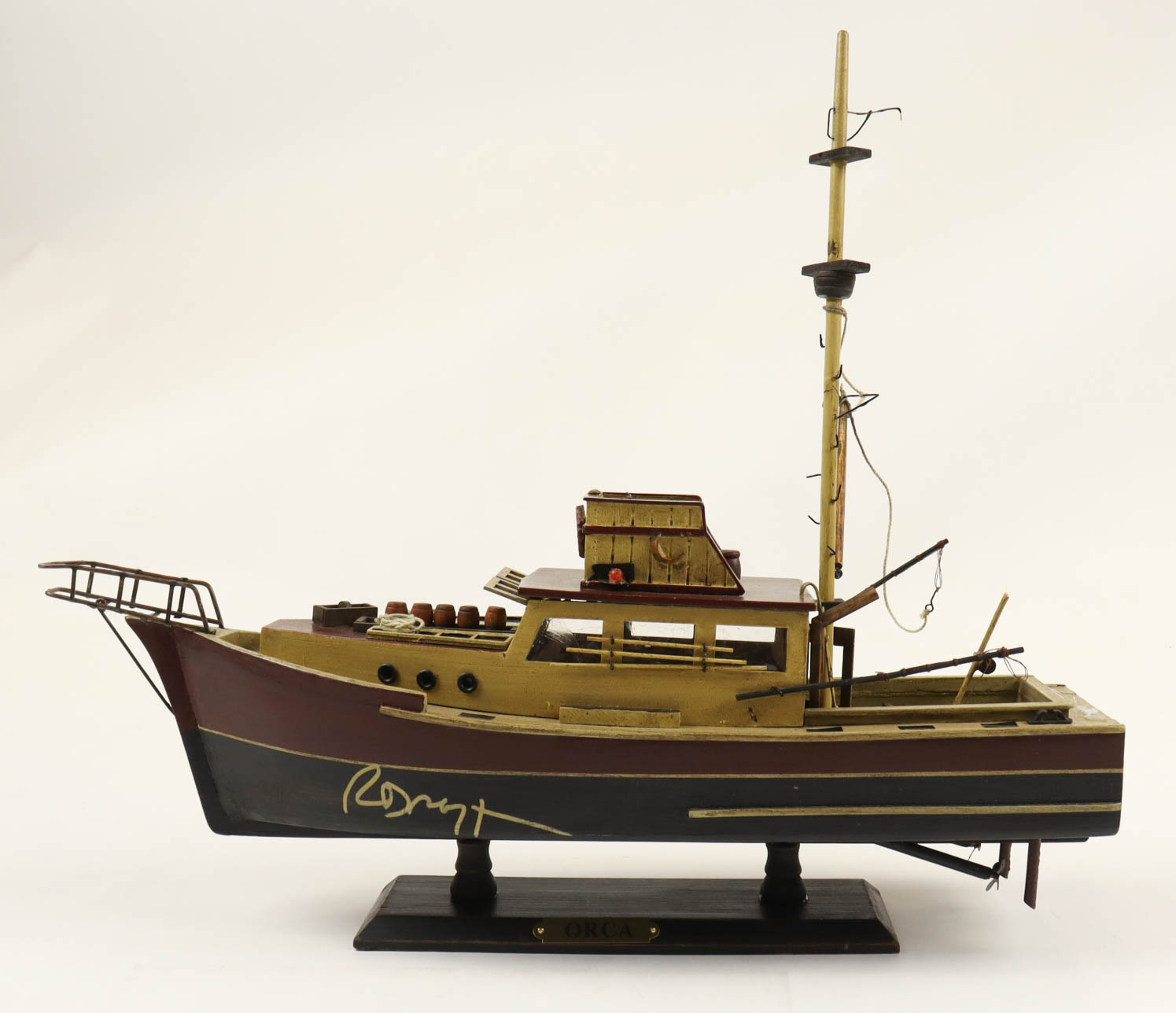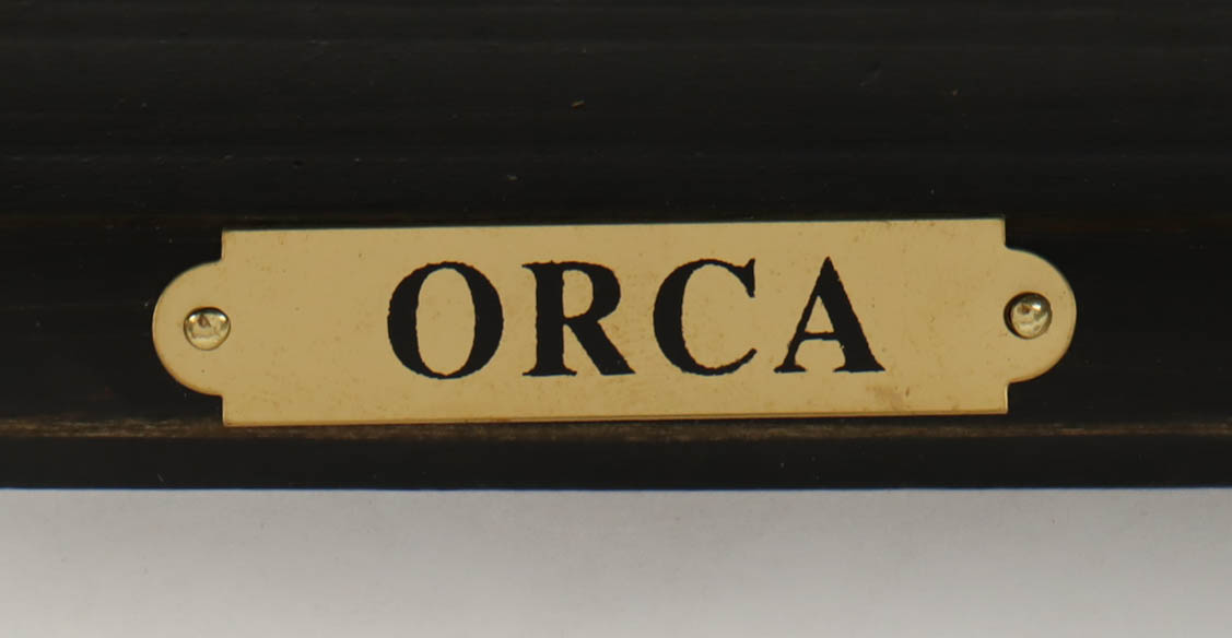 Jaws Orca replica ship has been hand-signed by Richard Dreyfuss (Matt Hooper). Please note, the ship has some damage and broken pieces. Please see photos for details regarding the condition of the ship.