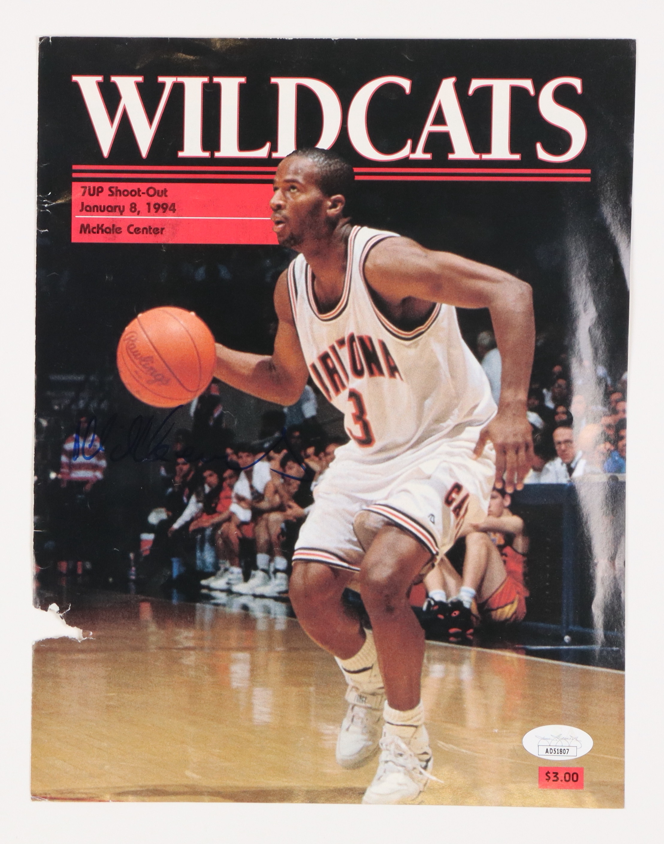Arizona Wildcats magazine has been hand-signed on the cover by Khalid Reeves. Please note, this is just the cover of the magazine, the full magazine is missing.