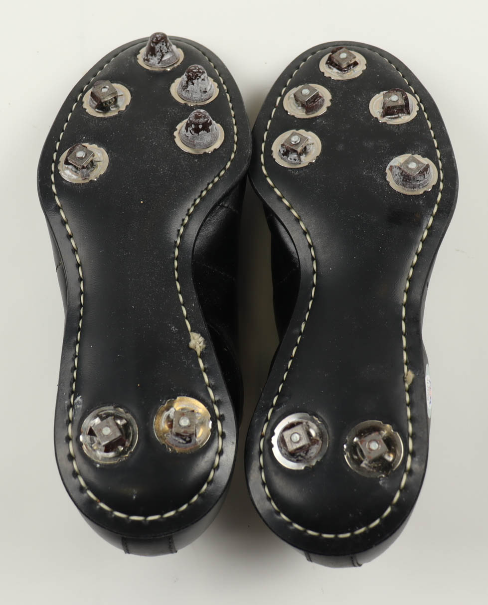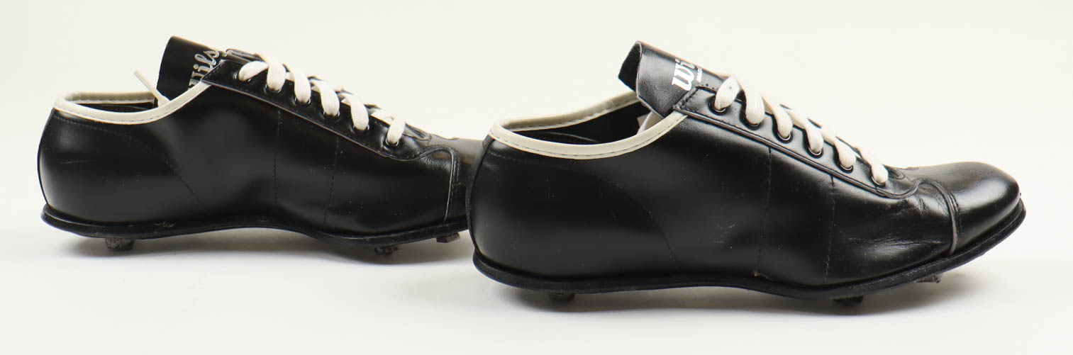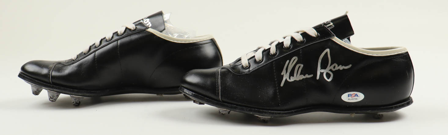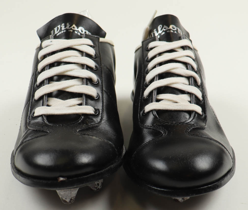 Vintage pair of baseball cleats. The left cleat has been hand-signed by Nolan Ryan (Houston Astros, HOF).
