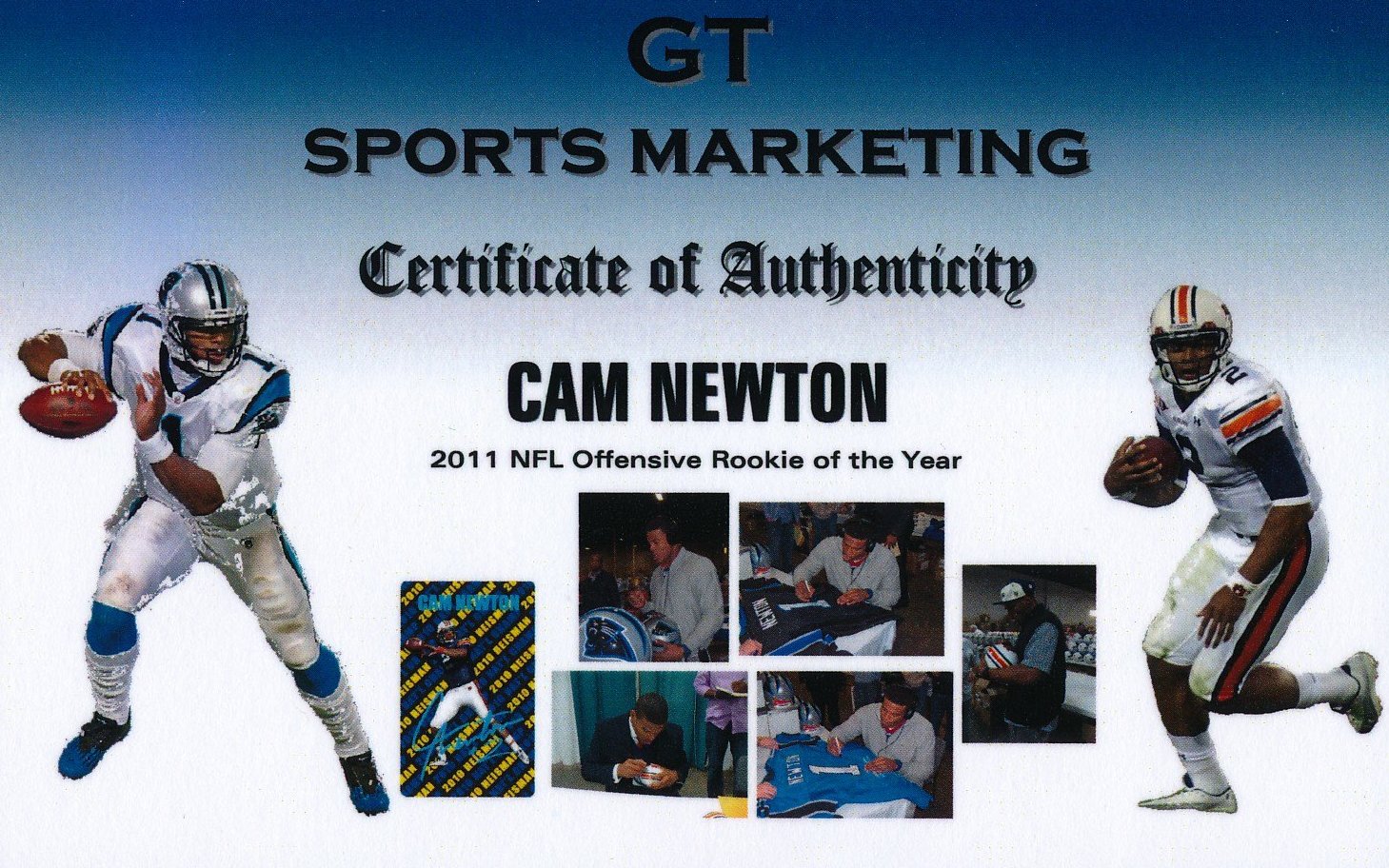 The autograph includes an official Cam Newton player hologram and COA from GT Sports Marketing as well as an official PSA/DNA hologram and COA for authenticity purposes.