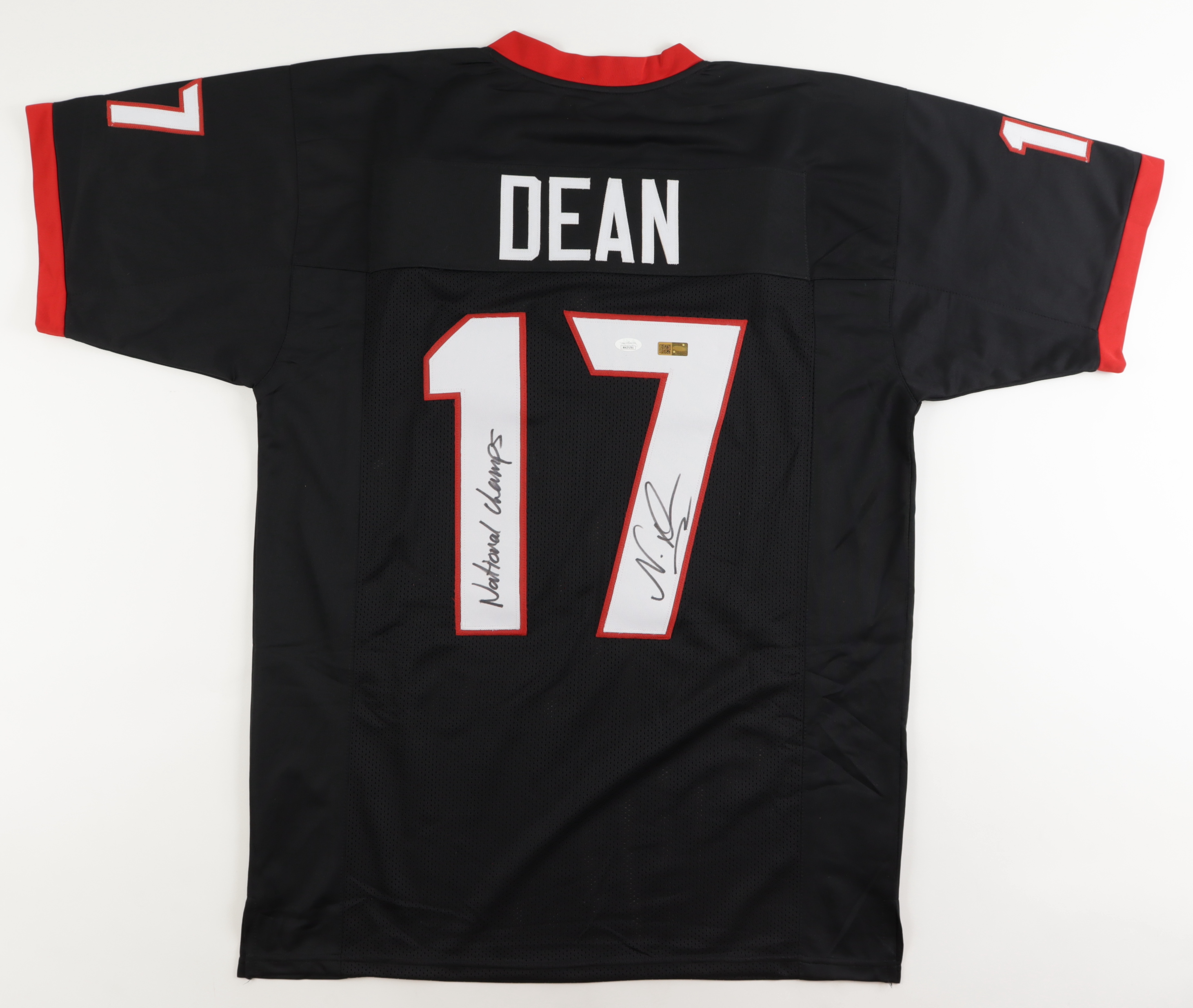 Nakobe Dean Signed Jersey Inscribed "National Champs" (JSA & Players Ink)