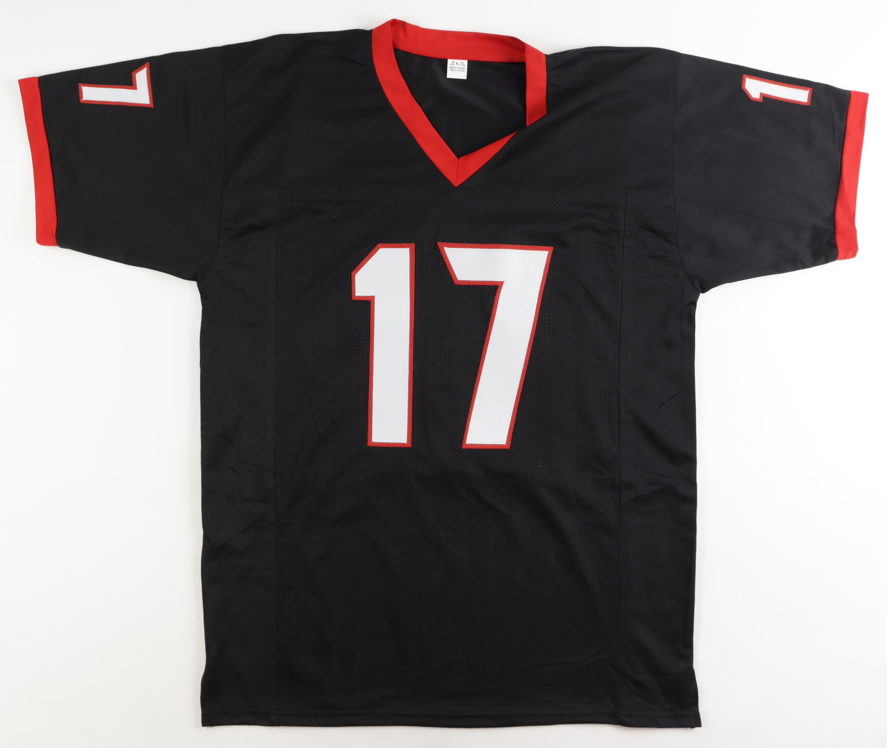Custom on-field style jersey. Everything is sewn on, size XL. Hand-signed and inscribed by Nakobe Dean.