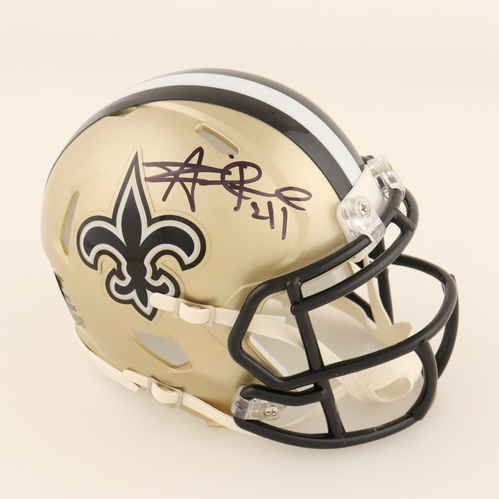 Riddell New Orleans Saints Speed mini helmet has been hand-signed by Alvin Kamara.