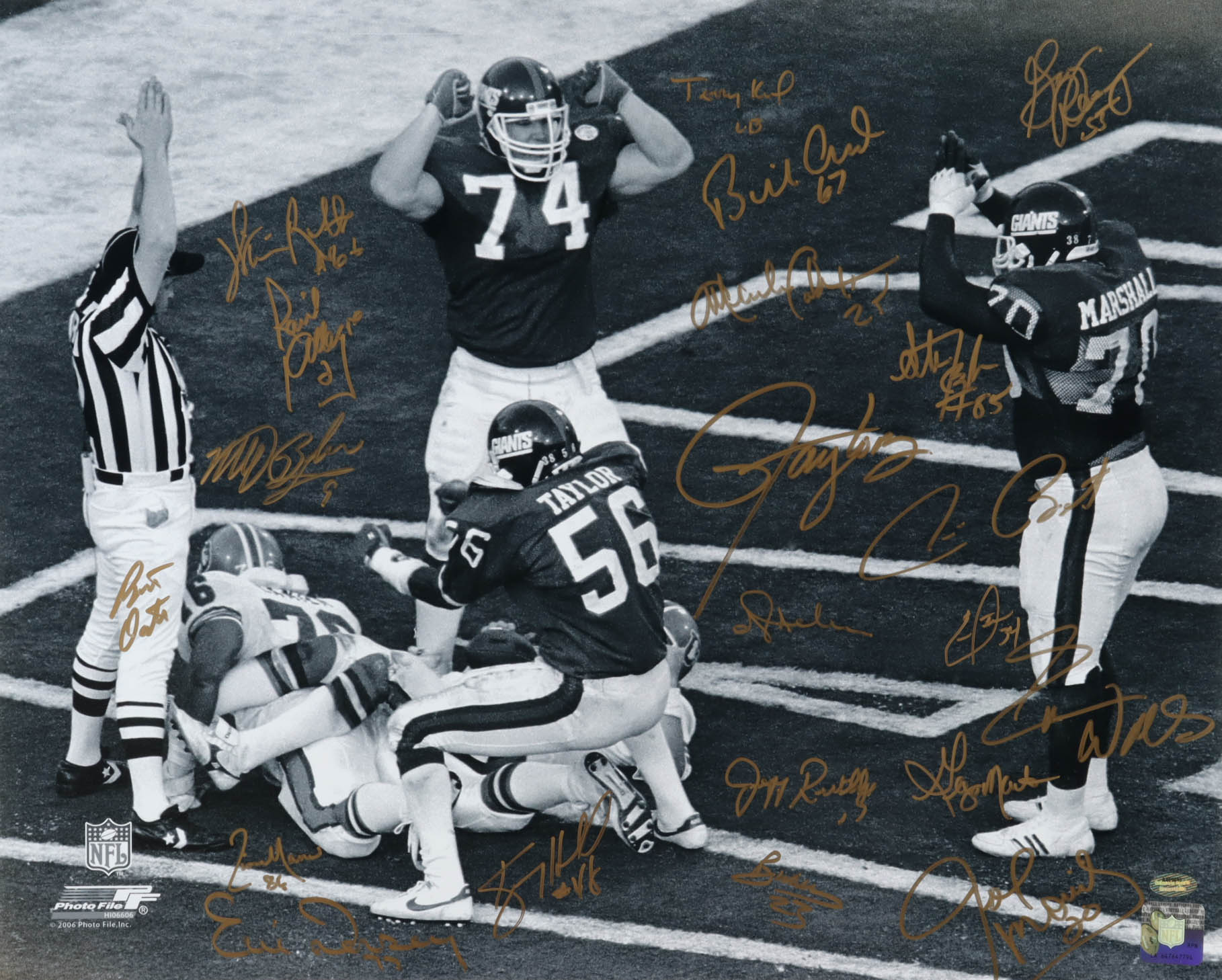 Giants Super Bowl XXI / XXV 16x20 Photo Team-Signed by (21) with Lawrence Taylor, Ottis Anderson, Bart Oates, Perry Williams, Lionel Manuel (Schwartz)