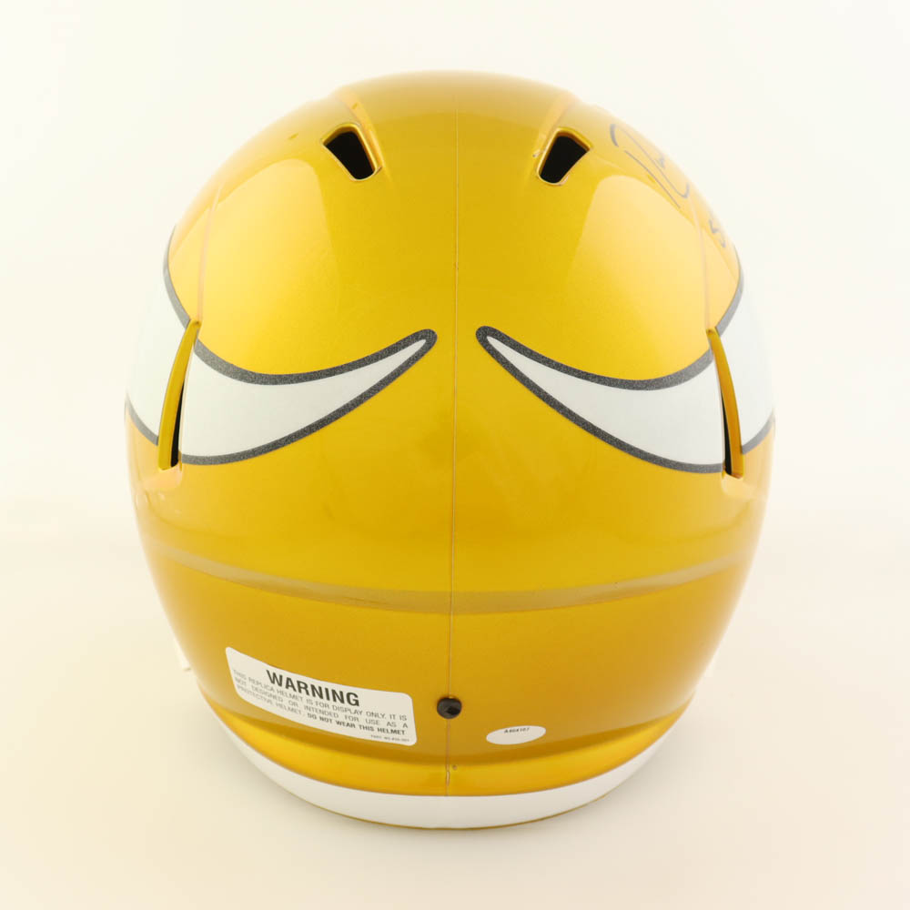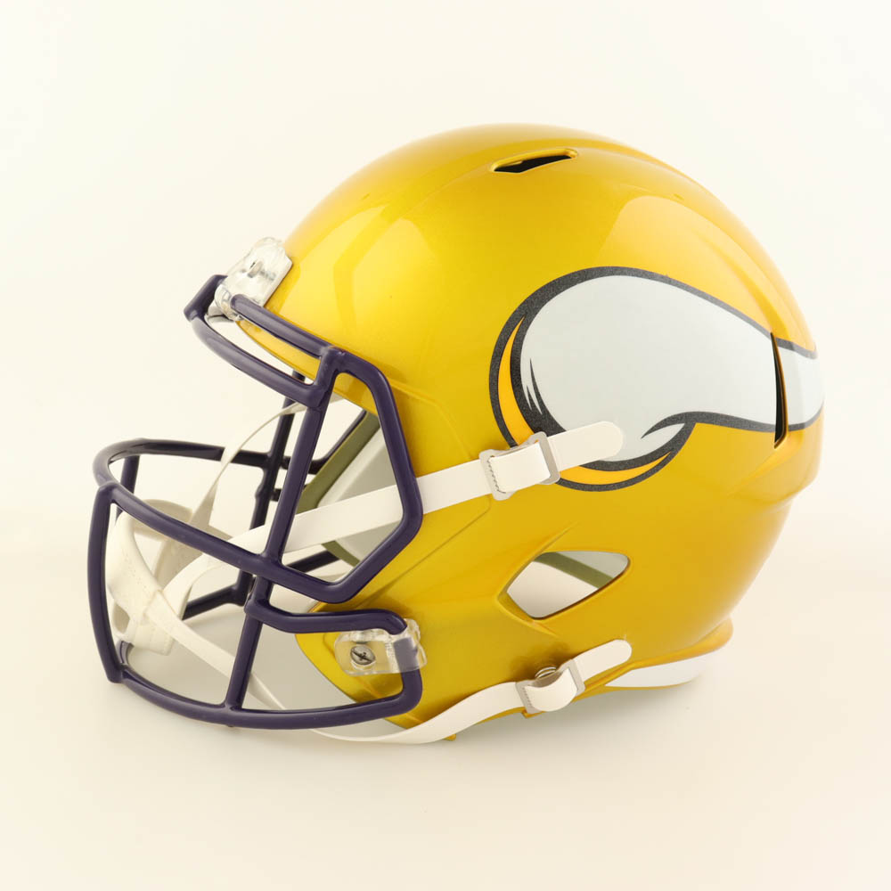 Riddell Minnesota Vikings Full-Size replica flash alternate speed helmet. Hand-signed and inscribed by Randy Moss (HOF).