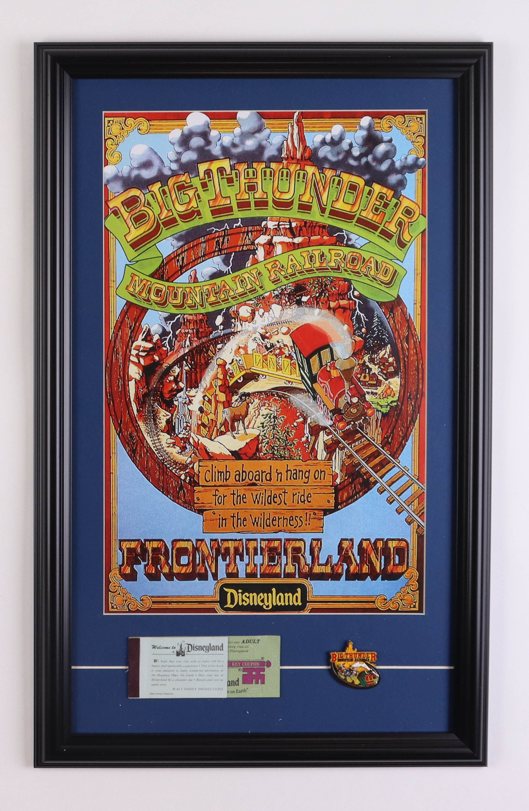 Disneyland "Big Thunder Mountain Railroad" Custom Framed Poster Print with Vintage Disneyland Ticket Book & Official Ride Pin
