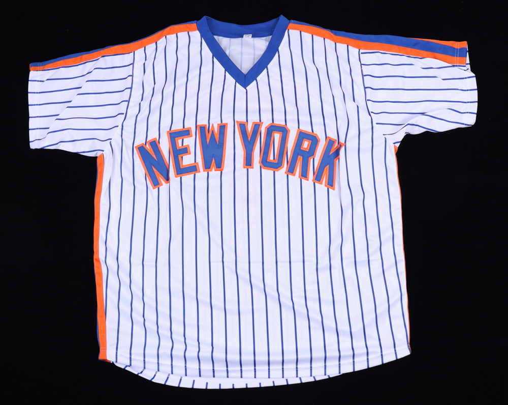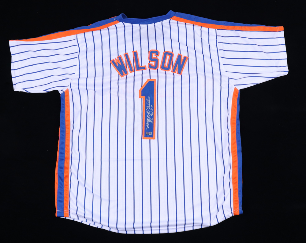 Custom on-field style jersey. Everything is sewn on, size XL. Hand-signed and inscribed by Mookie Wilson.