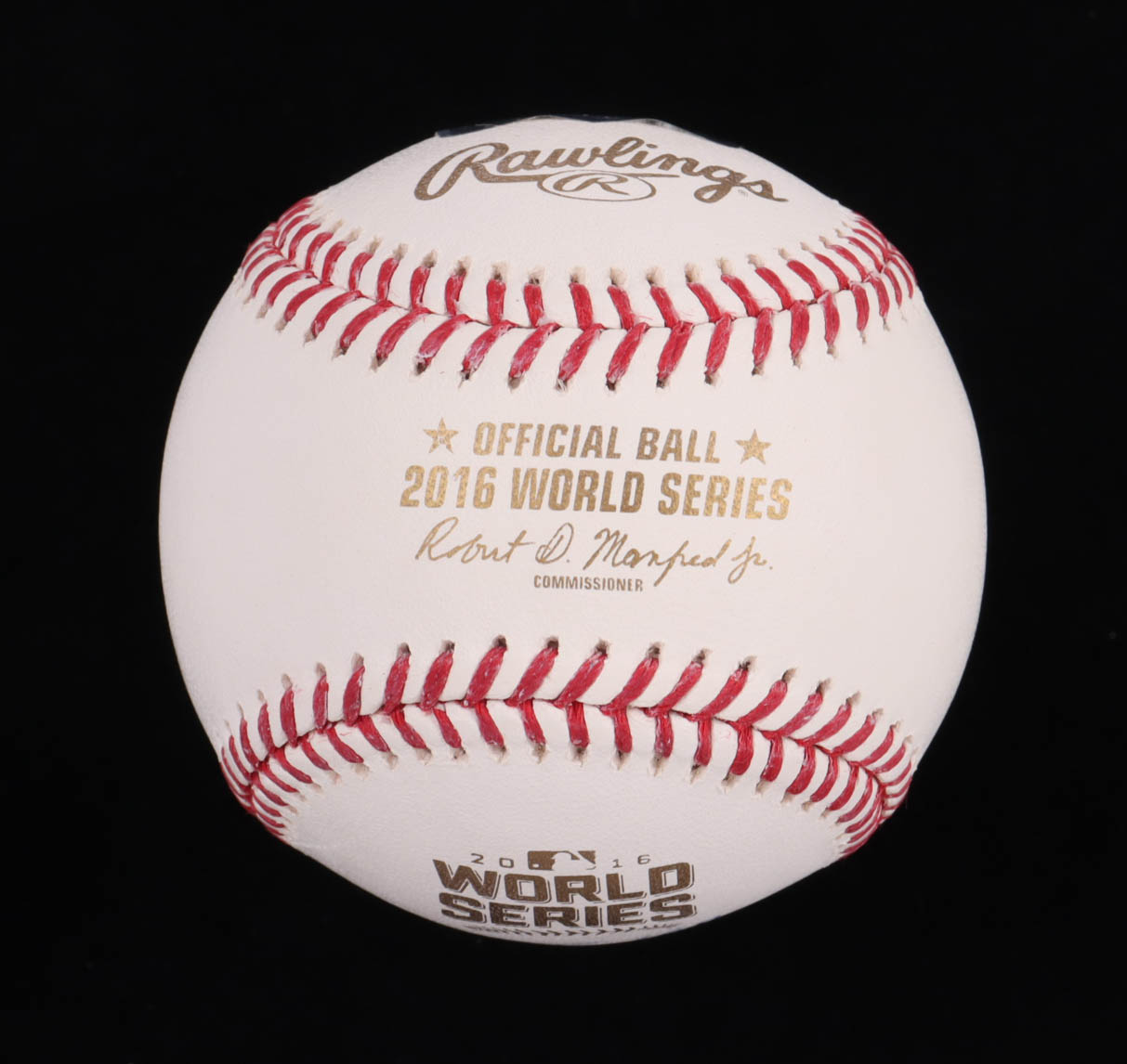 Rawlings Official 2016 World Series Logo Baseball. Hand-signed and inscribed by Jorge Soler (Atlanta Braves).