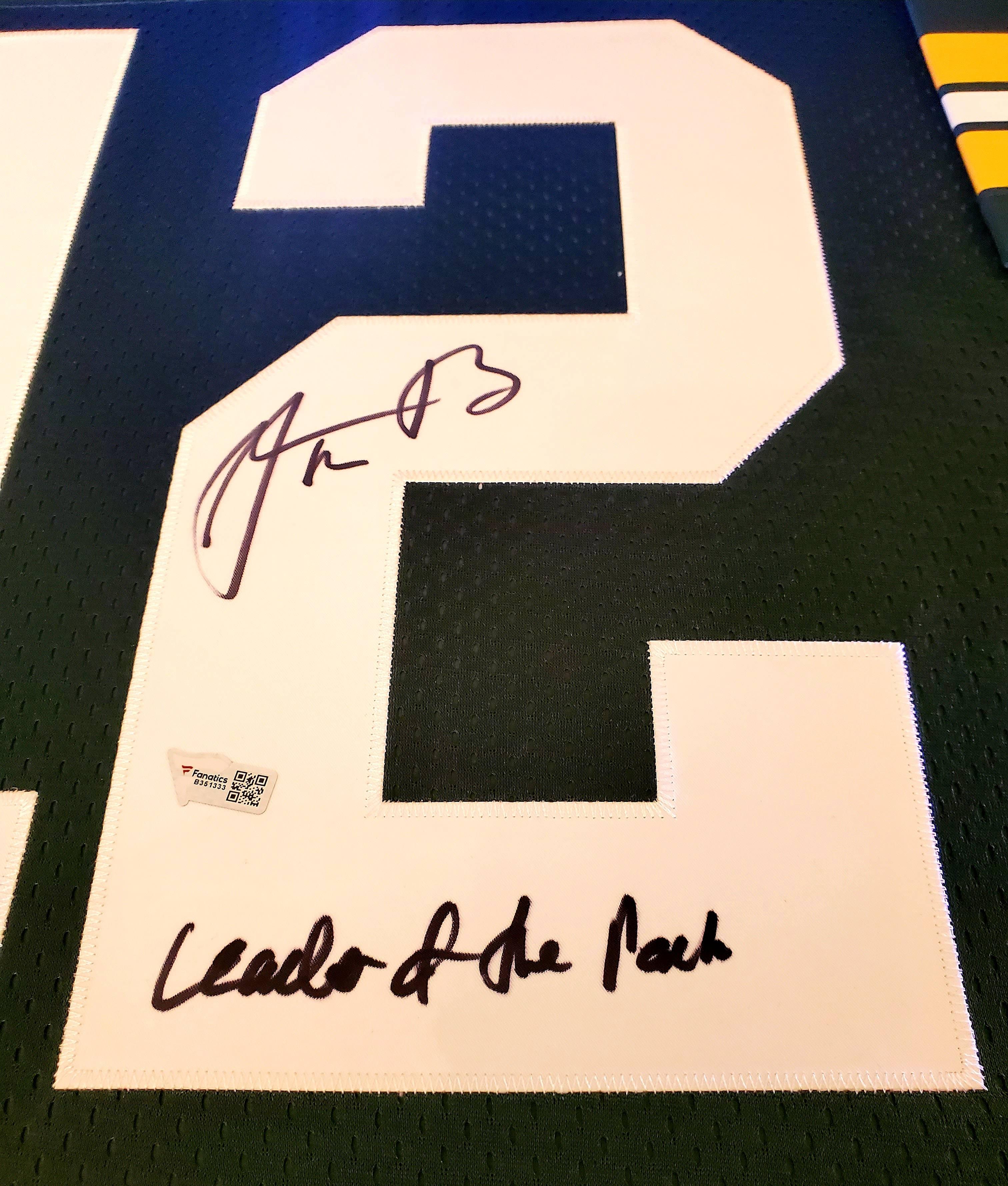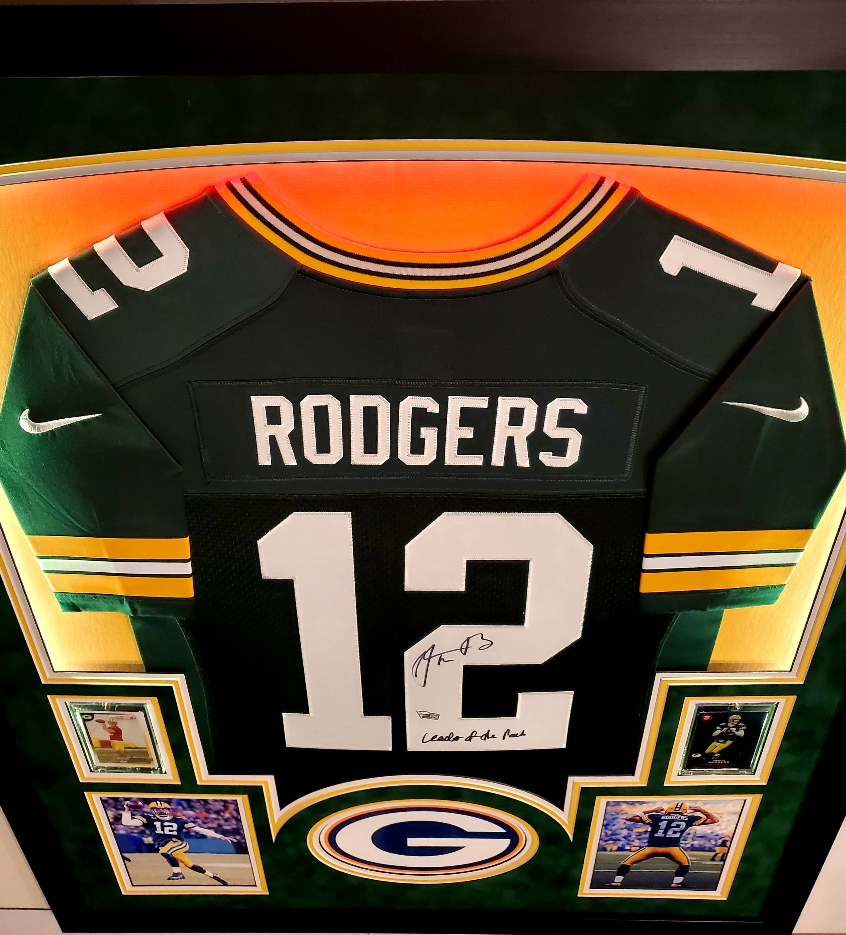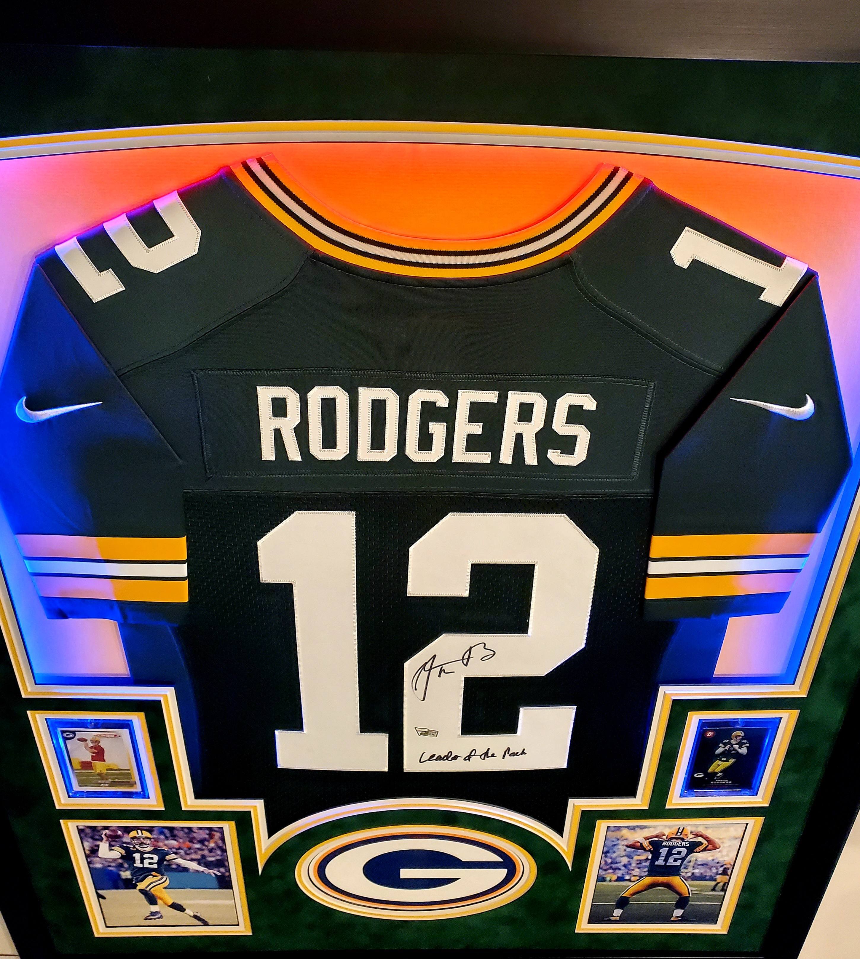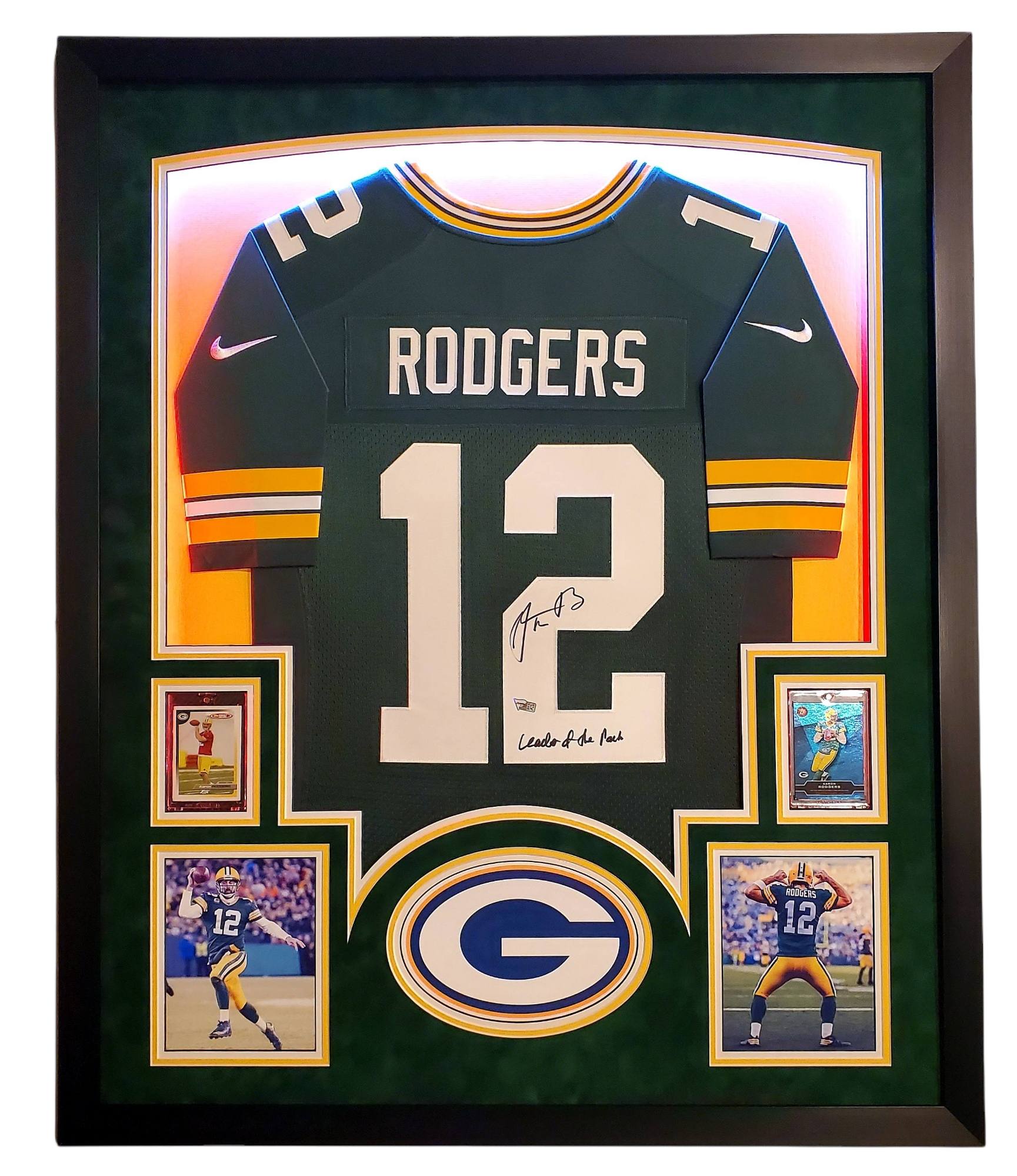 Aaron Rodgers Signed Packers 34x42 Custom Framed Jersey Display with LED Lights Inscribed "Leader of the Pack" (Fanatics)