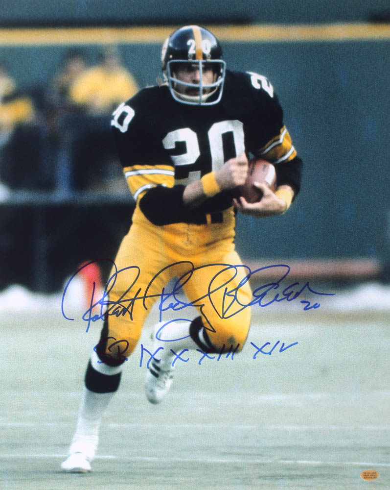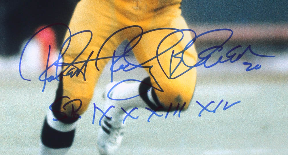 Photo measures 16" x 20" in size. Photo has been hand-signed and inscribed in blue felt-tip pen by Rocky Bleier (Steelers).