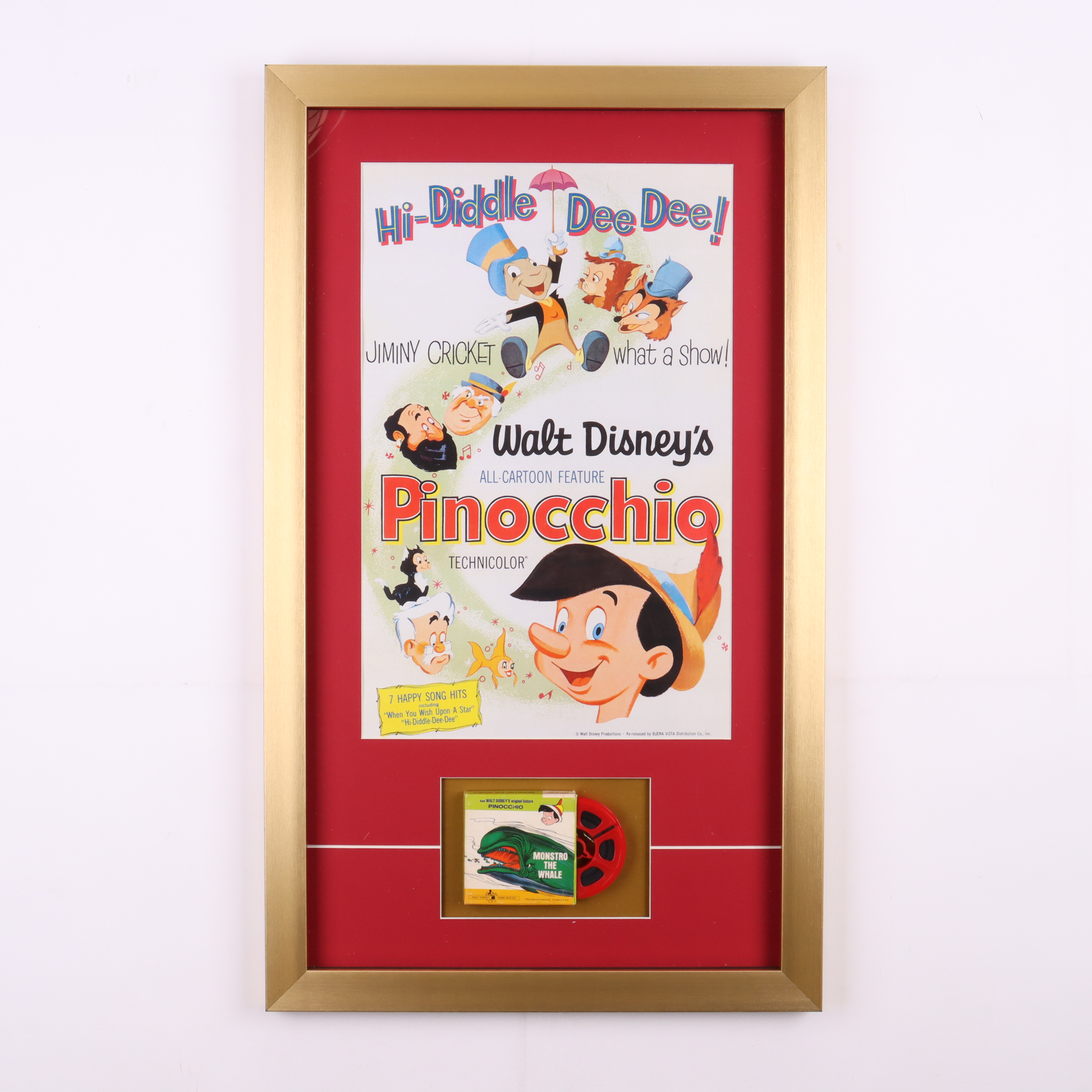 Walt Disney's "Pinnochio" 15x28.5 Custom Framed Print Display with Vintage 8mm Disney Film Reel