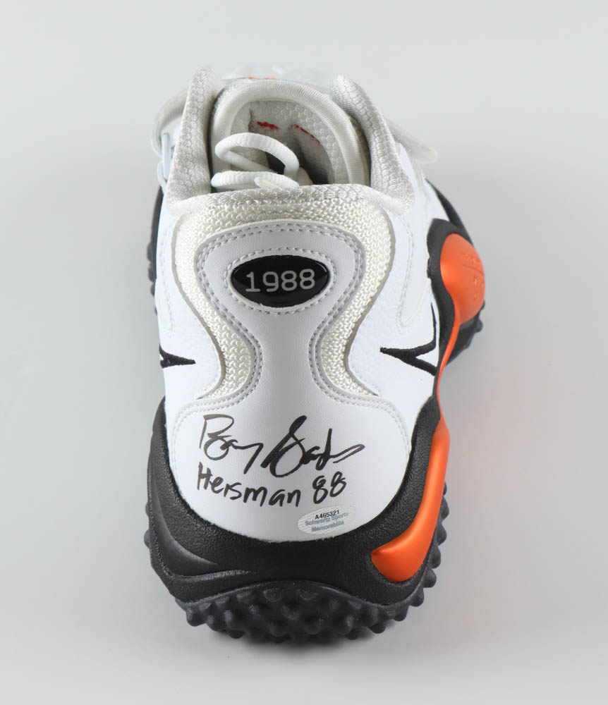 Barry Sanders Signed Nike Football Shoe Inscribed "Heisman 88" (Schwartz)