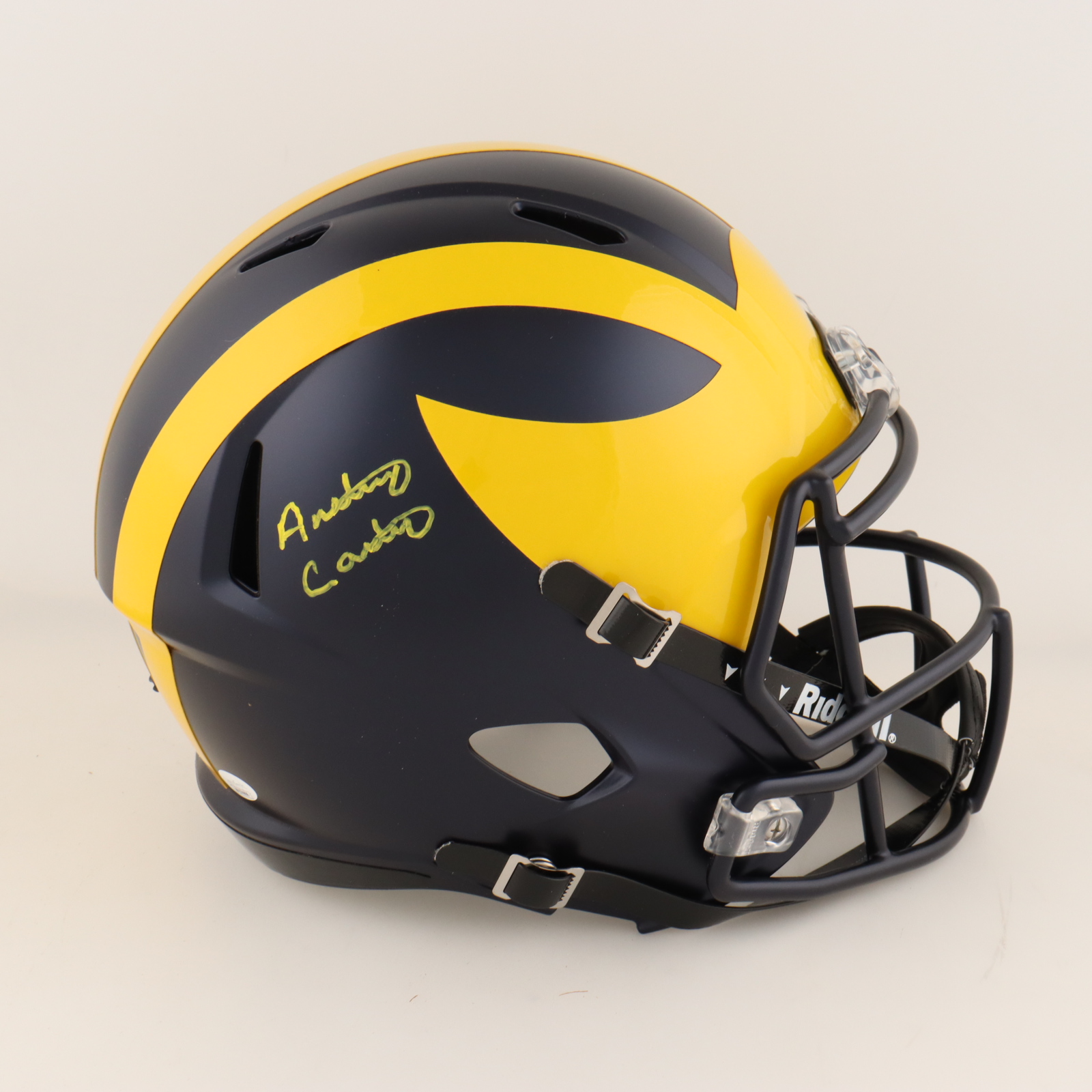 Riddell Michigan Wolverines full-size replica Speed helmet. Hand-signed by Anthony Carter.