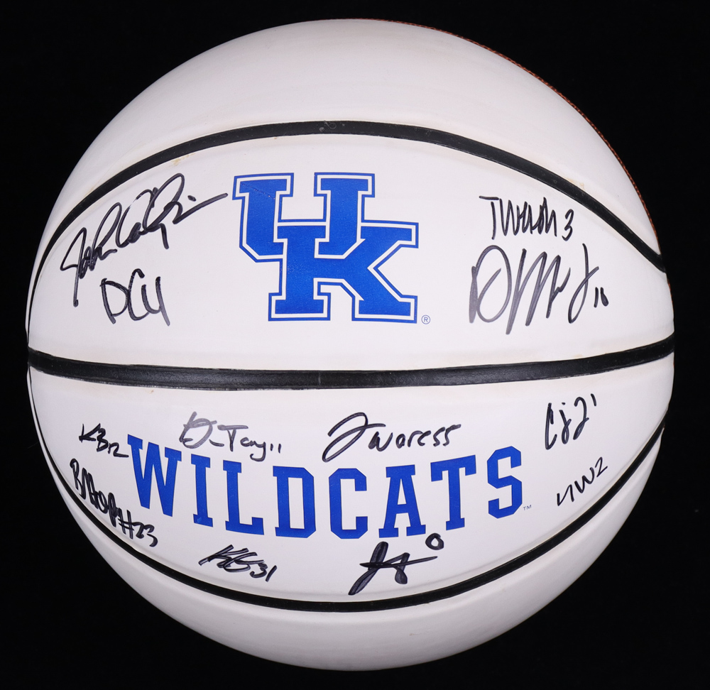 Kentucky Wildcats logo basketball. Hand-signed by (12) with John Calipari, Daimion Collins, Tyty Washington Jr., Davion Mintz, Jacob Toppin, Dontaie Allen, Keion Brooks Jr., CJ Fedrick, Kellan Grady, Bryce Hopkins, Lance Ware and Sahvir Wheeler.
