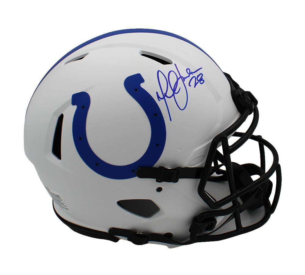 Riddell Indianapolis Colts full-size authentic on-field lunar eclipse alternate speed helmet. Hand-signed by Marshall Faulk (HOF).