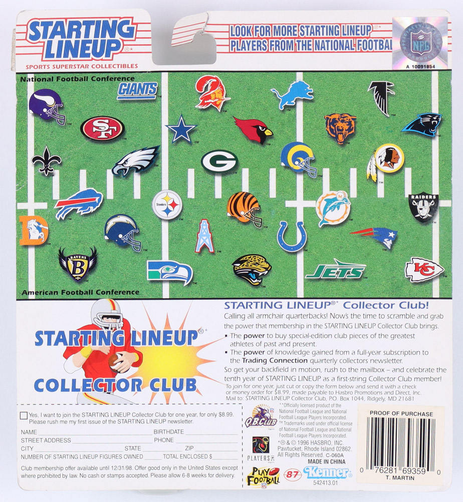 Tony Martin 1996 Starting Lineup 10th Year Edition Action Figure with Trading Card
