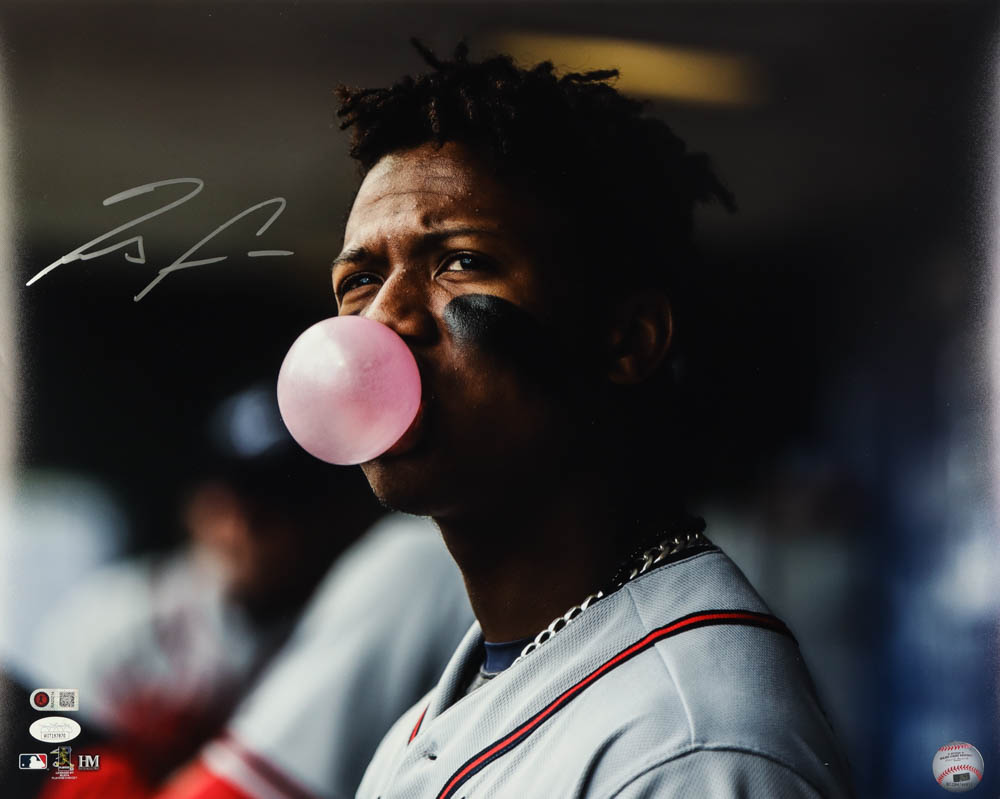 Photo measures 16" x 20" in size and has been hand-signed by Ronald Acuna Jr. (Atlanta Braves).