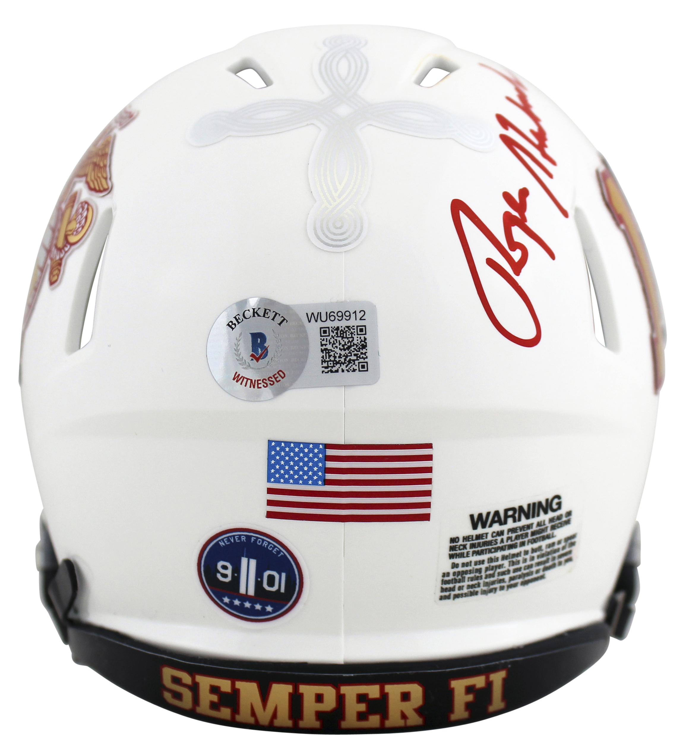 Riddell United States Marine Corps mini helmet. Hand-signed by Roger Staubach (Dallas Cowboys, HOF).