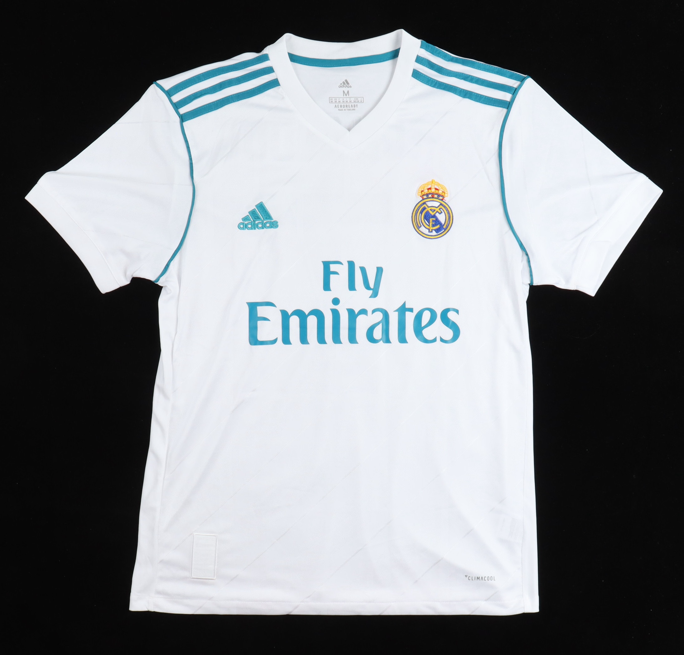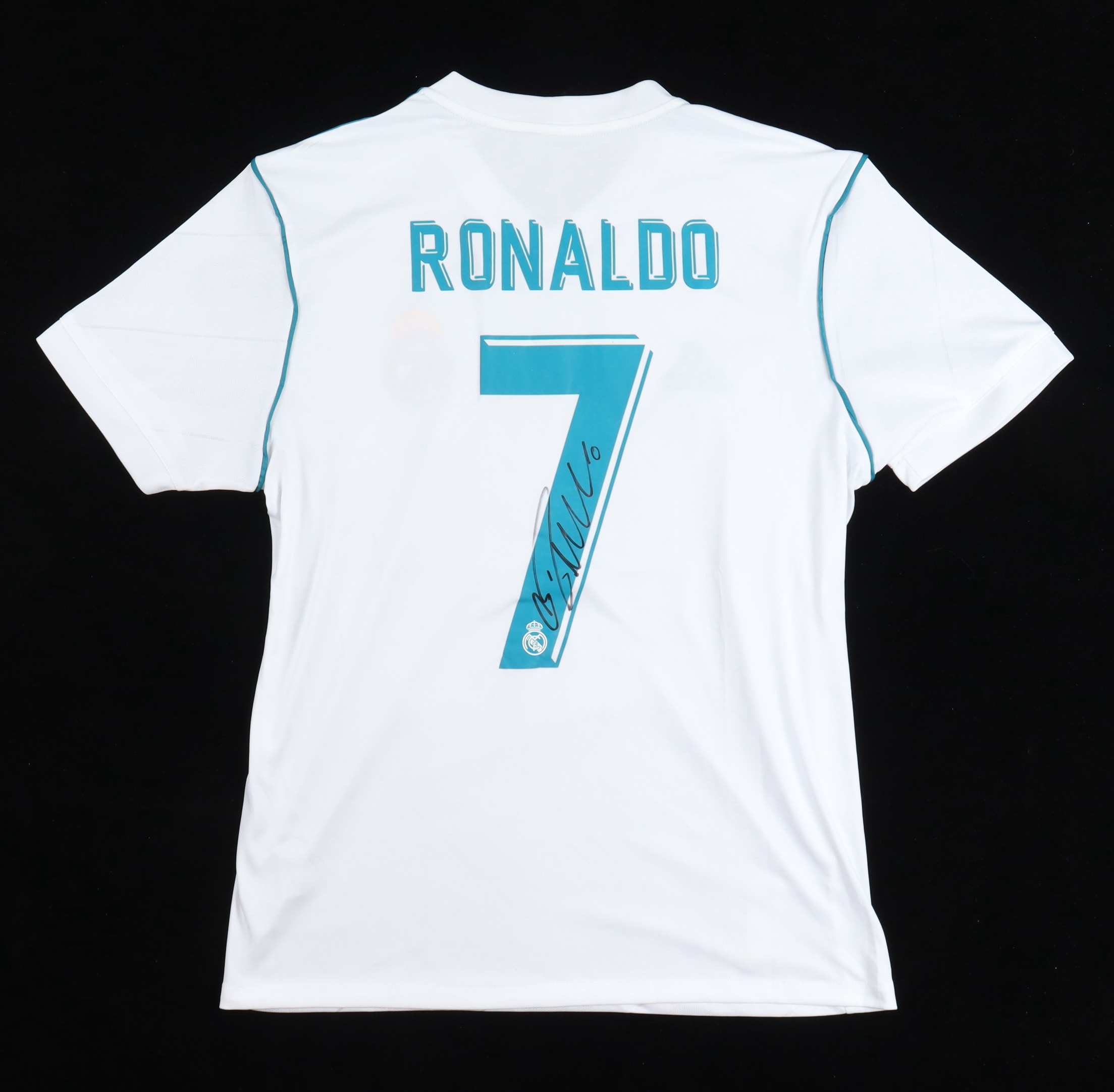Adidas on-field style jersey. Everything is printed on, size M. Hand-signed by Cristiano Ronaldo (Real Madrid Football Club).