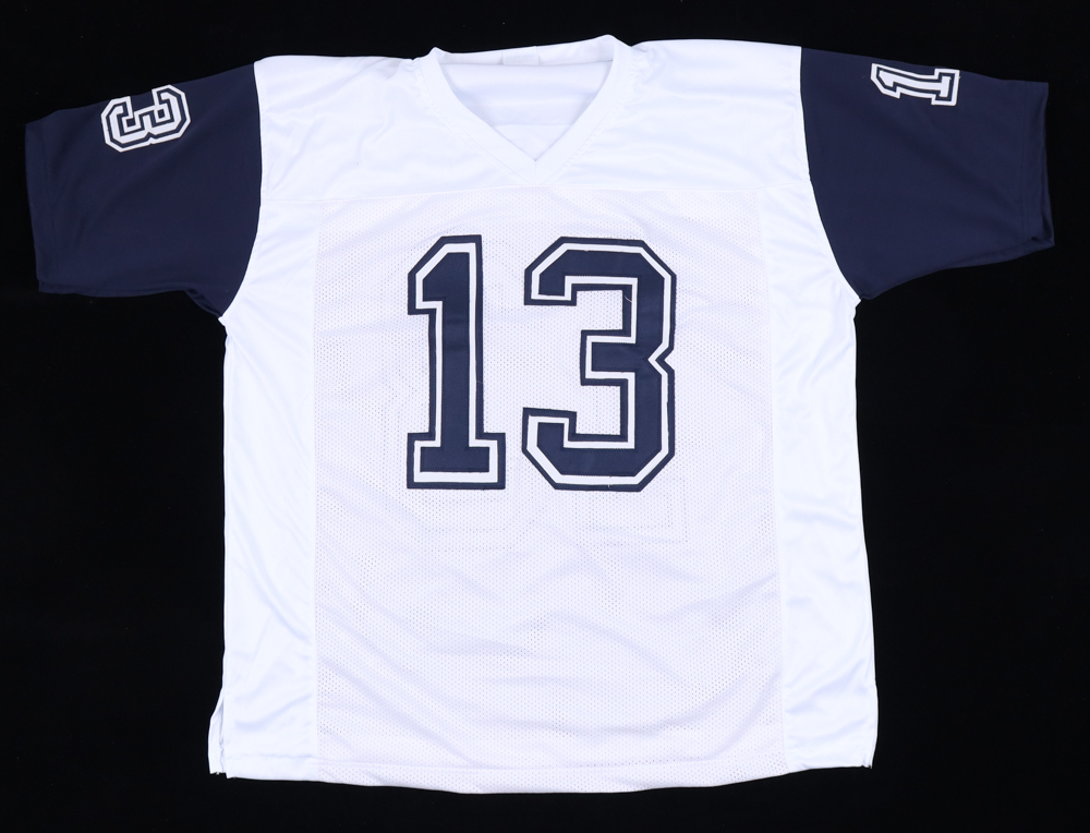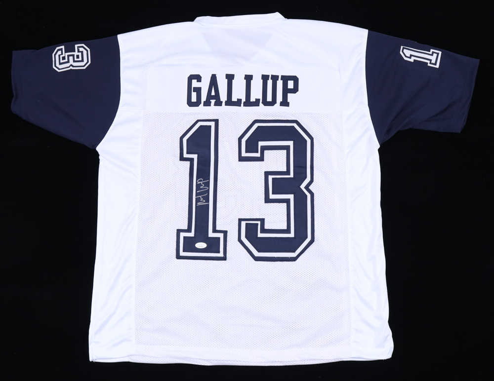 Custom on-field style jersey. Everything is sewn on, size XL. Hand-signed by Michael Gallup.