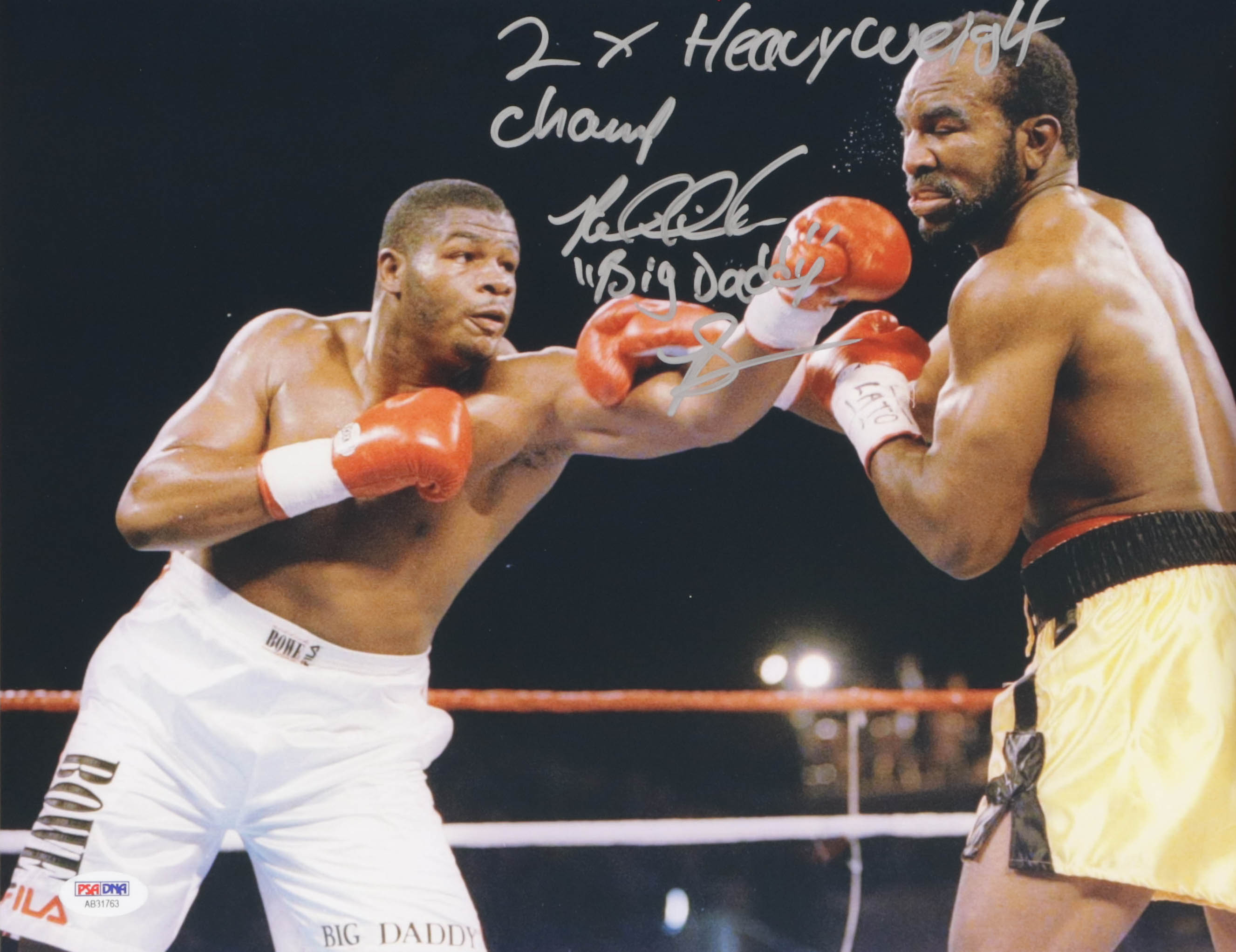 Riddick Bowe Signed 11x14 Photo Inscribed "Big Daddy" & "2x Heavyweight Champ" (PSA COA)