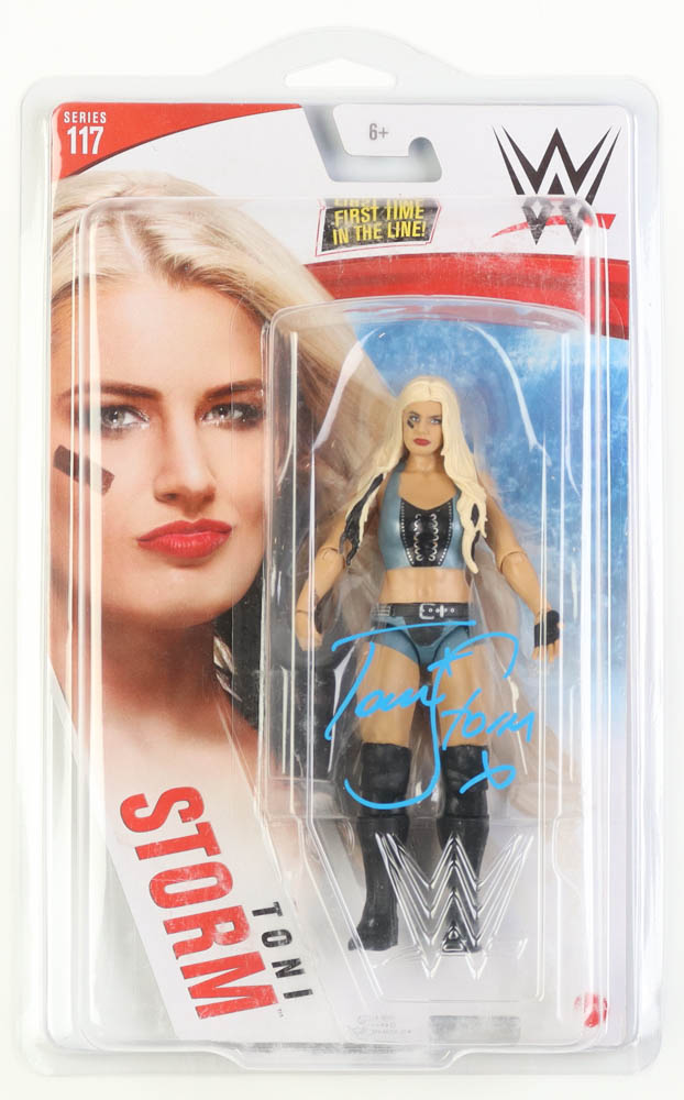 Mattel WWE action figure. Hand-signed on the box by Toni Storm.