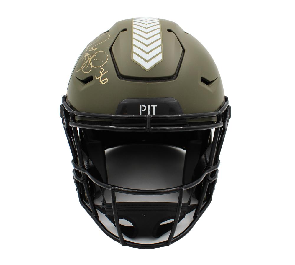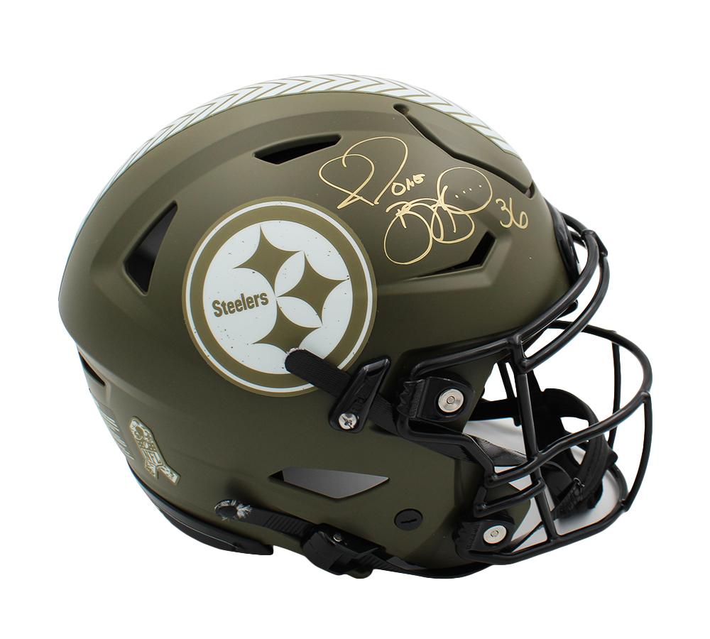 Riddell Pittsburgh Steelers Salute to Service Full-Size Authentic On-Field SpeedFlex Helmet has been hand-signed by Jerome Bettis (HOF).