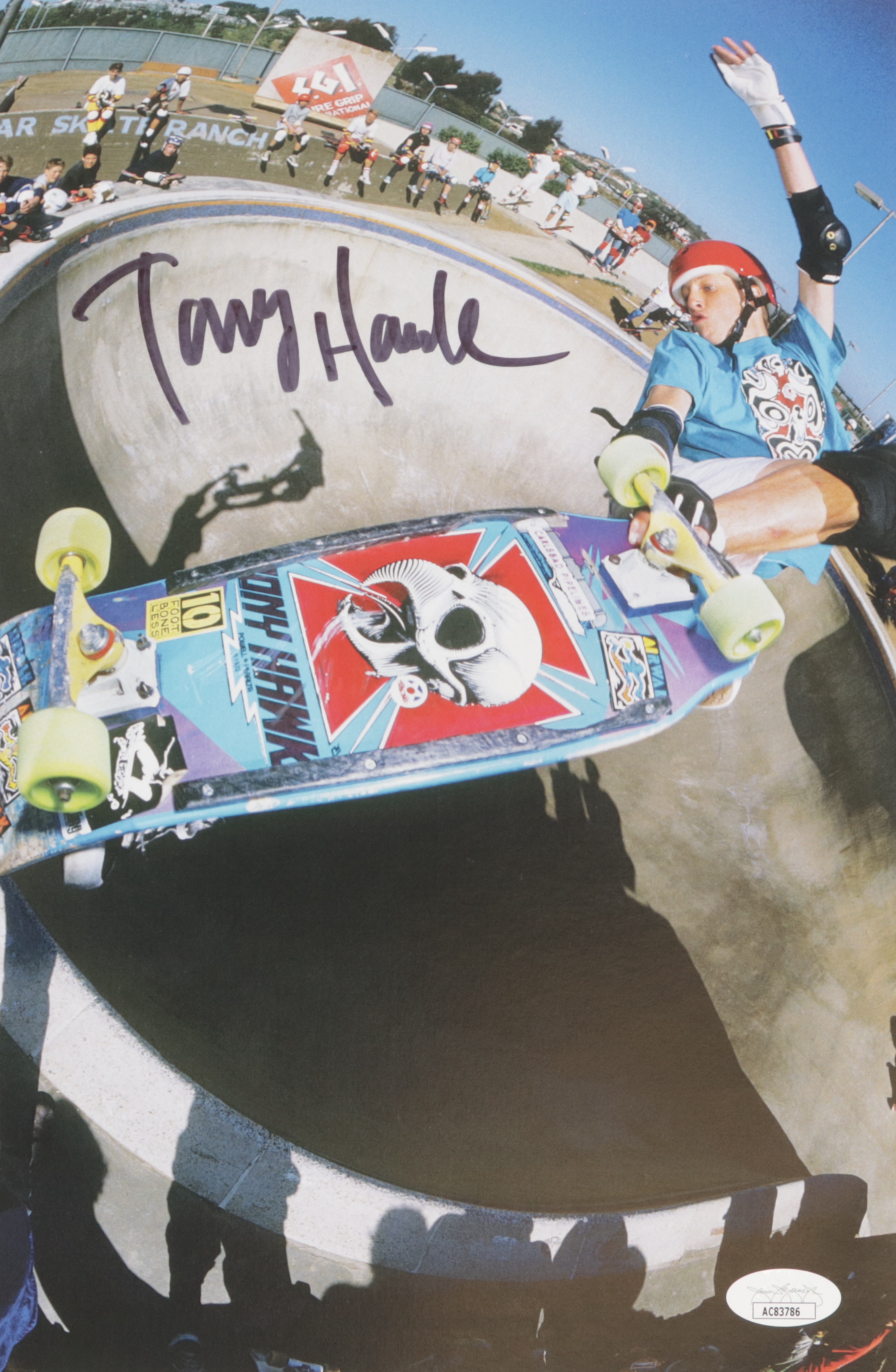 Photo measures 8" x 12" in size and has been hand-signed by Tony Hawk.