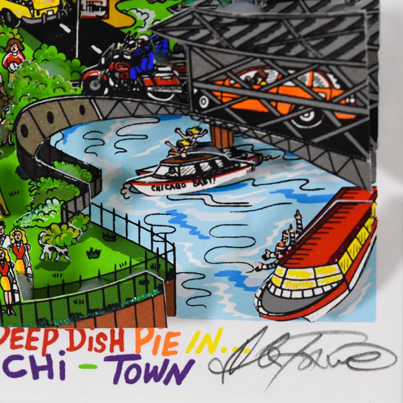 Charles Fazzino Signed "A Deep Dish Pie in Chi Town" LE Custom Framed 3D Silk Screen (PA)