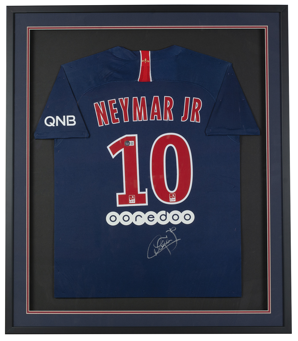 Custom frame measures 32" x 36" in size and features a custom on-field style jersey that has been hand-signed by Neymar (Paris Saint-Germain Football Club).