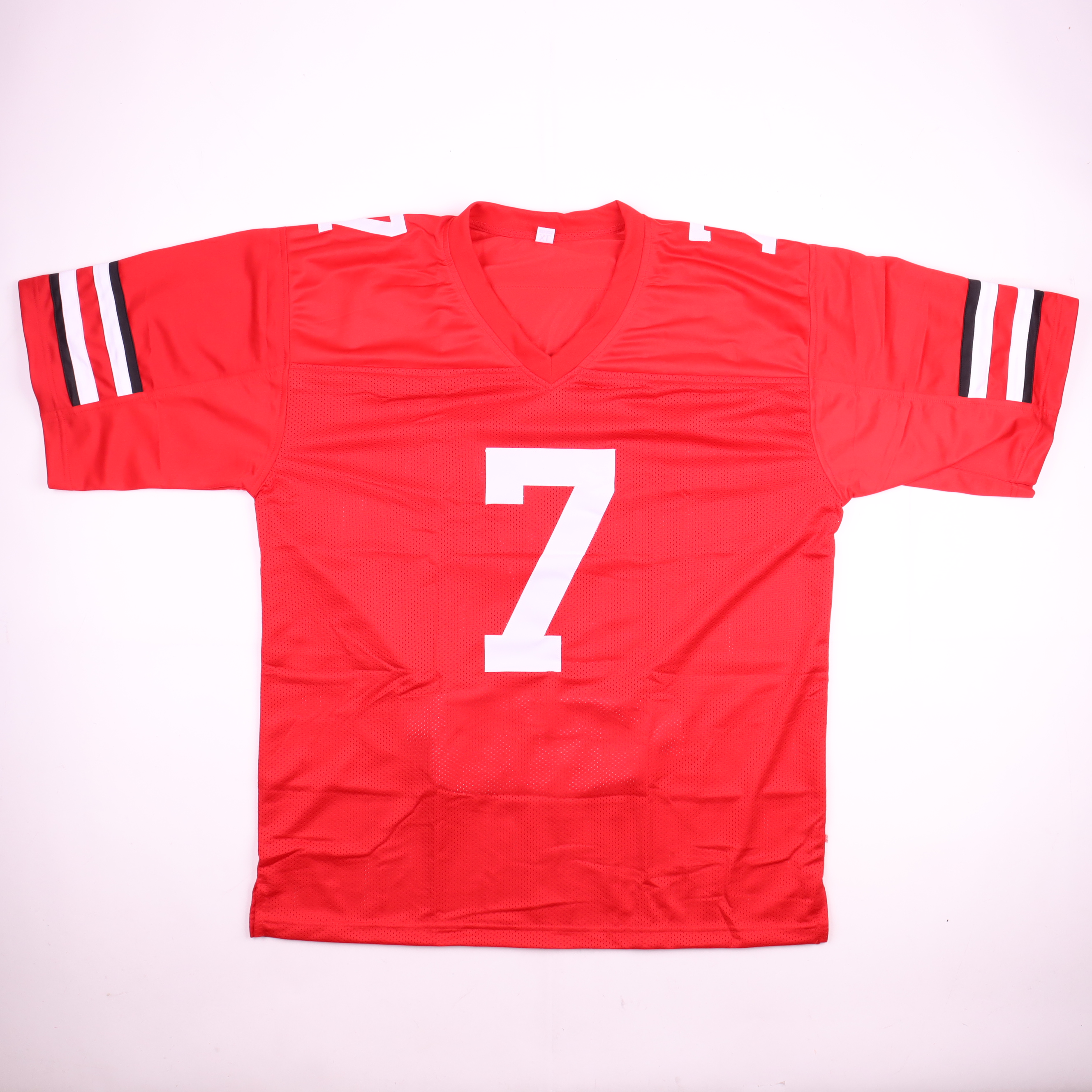 Custom on-field style jersey. Everything printed on, size XL. Hand-signed by Dwayne Haskins Jr. (D.2022) Haskins' career stats have been stitched on below the reverse numbers.