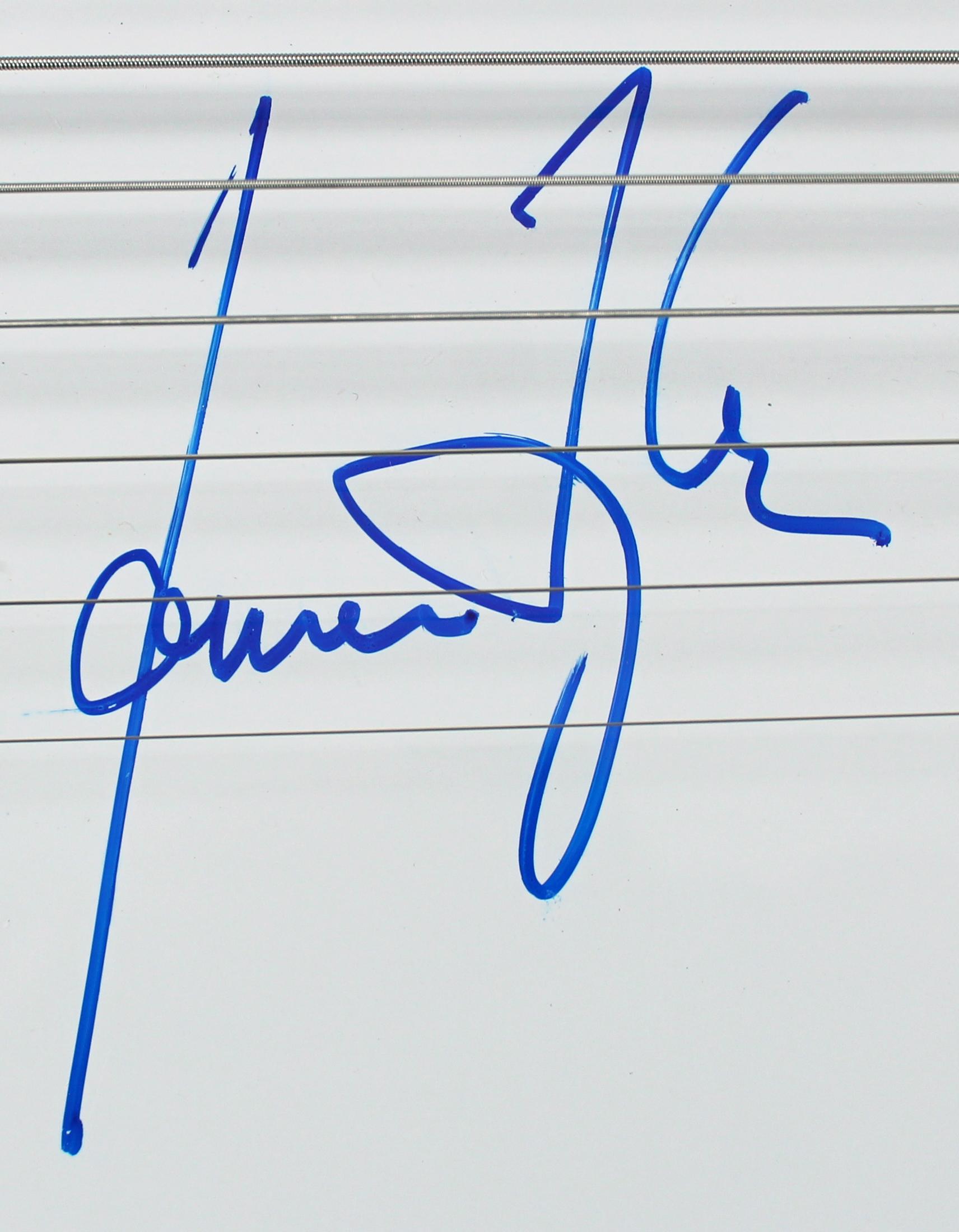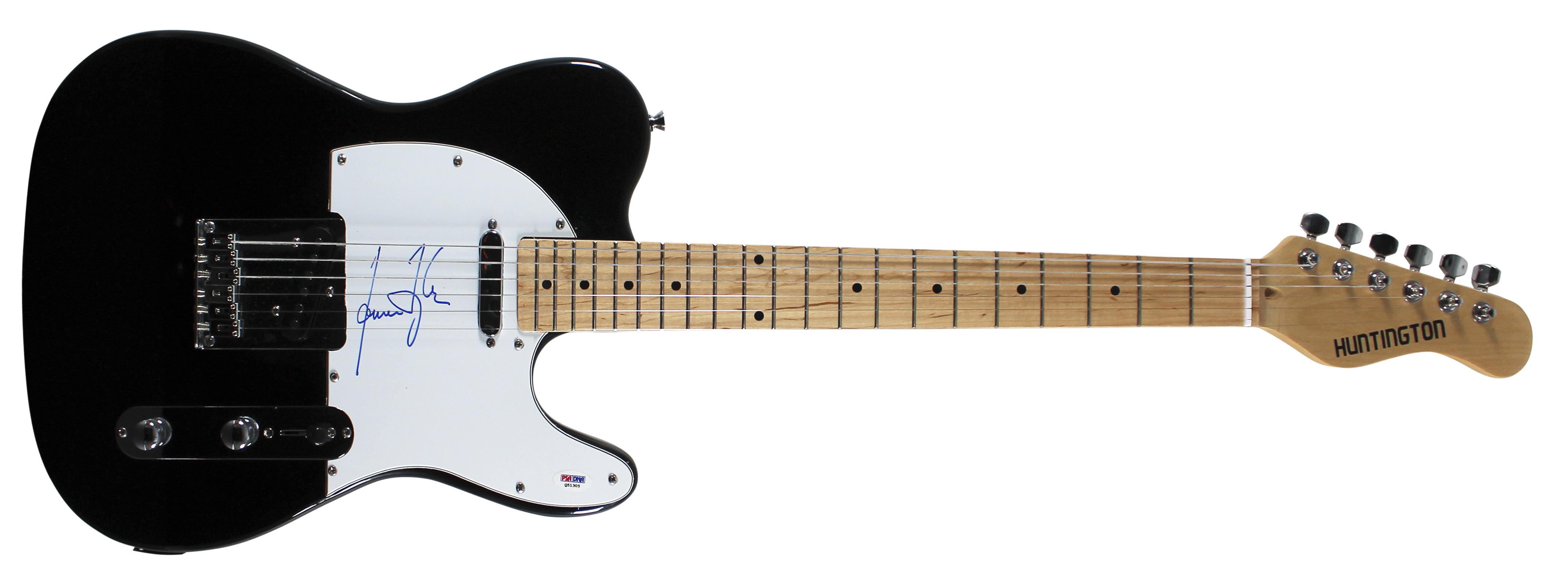 Huntington Pro electric guitar measures 39" in length. Hand-signed on the pickguard by James Taylor.