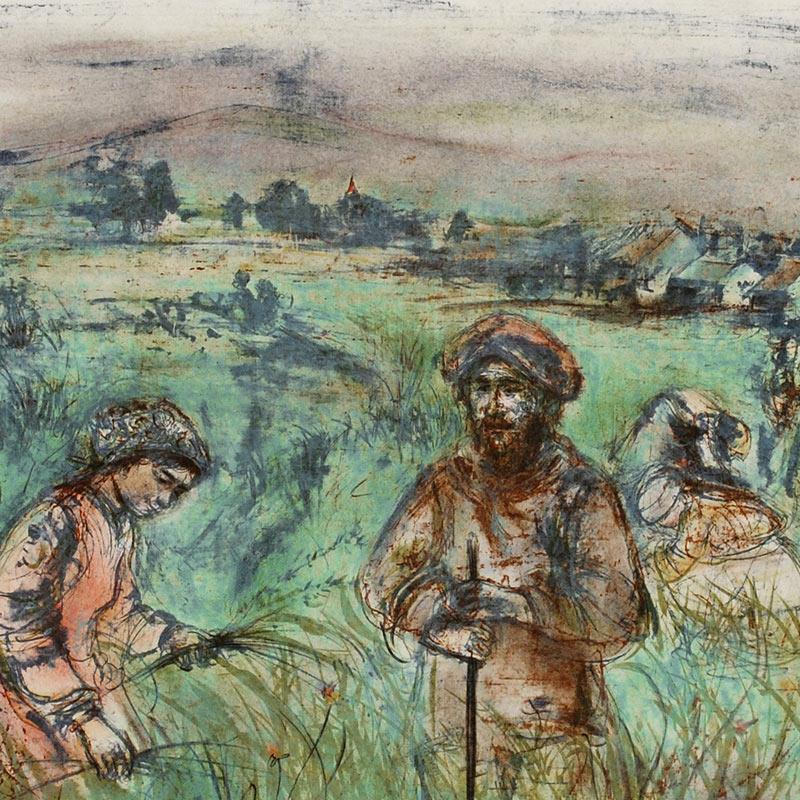 "Fields Near Chartres" LE 30x22 Lithograph by Edna Hibel (Artova)