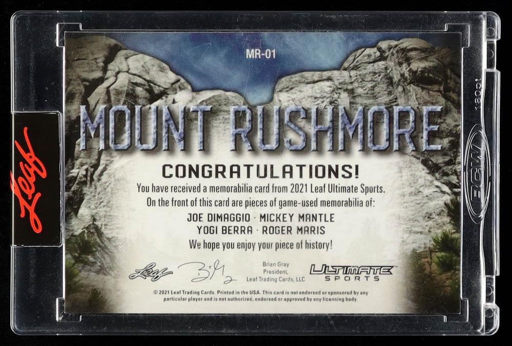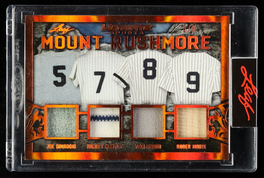 Joe DiMaggio / Mickey Mantle / Yogi Berra / Roger Maris 2021 Leaf Ultimate Sport Mount Rushmore Quad Memorabilia #MR01 #2/8