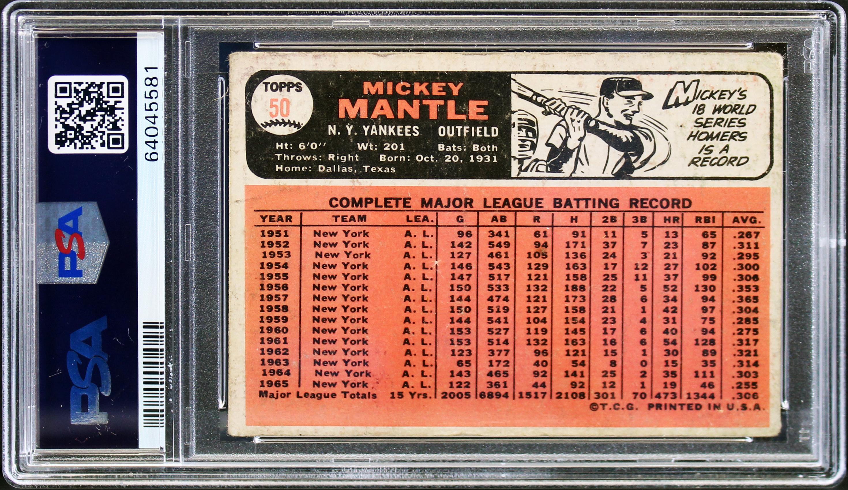 Mickey Mantle Signed 1966 Topps #50 (PSA)