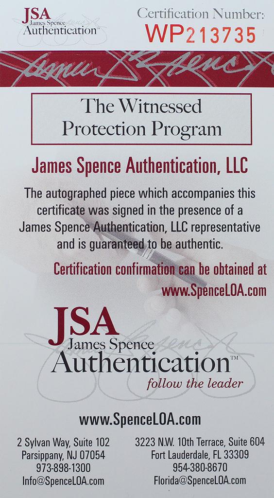 The lot / autograph(s) includes an official James Spence Authentication (JSA) hologram and matching COA for authenticity purposes. The signing of this item was witnessed by JSA.
